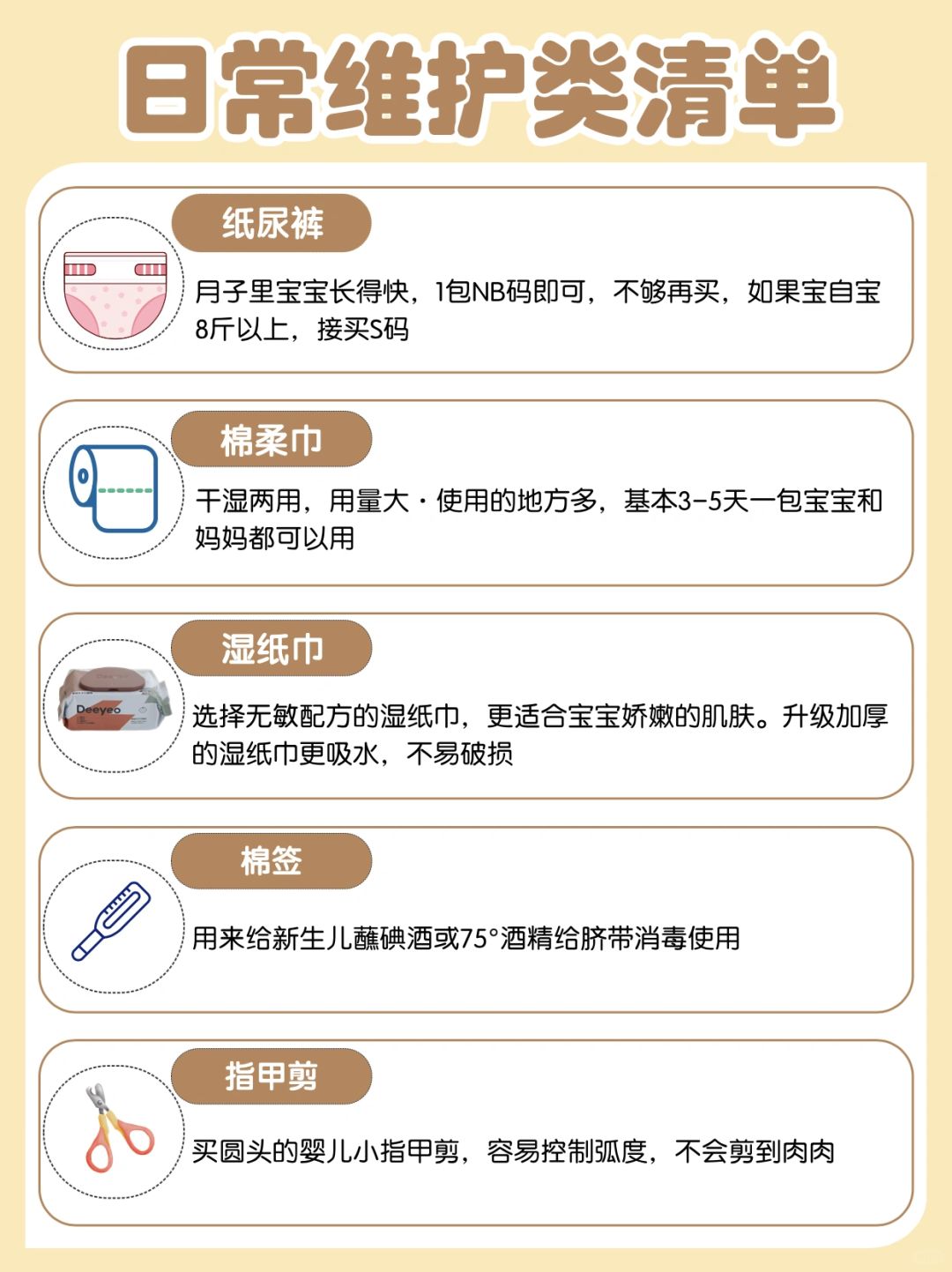 纸尿裤,棉柔巾,湿纸巾,棉签,指甲剪