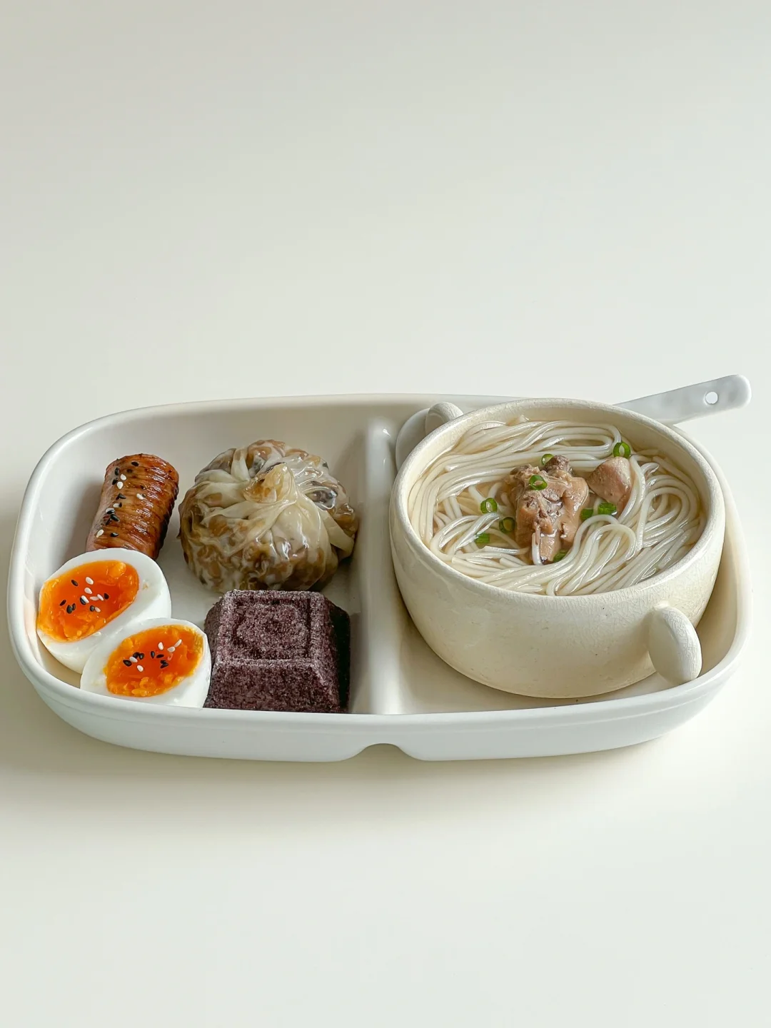 中式早餐🥢鸡汤面🥣烧麦&枣泥糕&黑胡椒烤肠