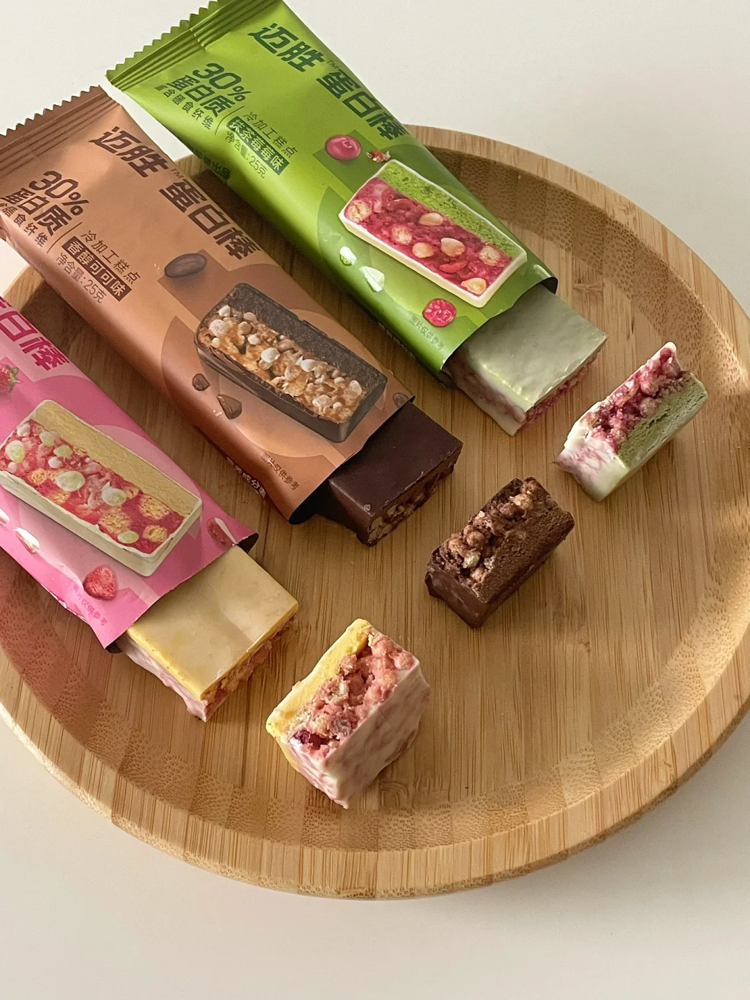 这段时间早晨做酸奶碗会搭配上三种不同口味的迈胜蛋白棒🐣美味又营养🥖层次感丰富还好吃不腻🍓草莓酸奶酸酸甜甜的,抹茶莓莓很清新,可可味越嚼越香🍫