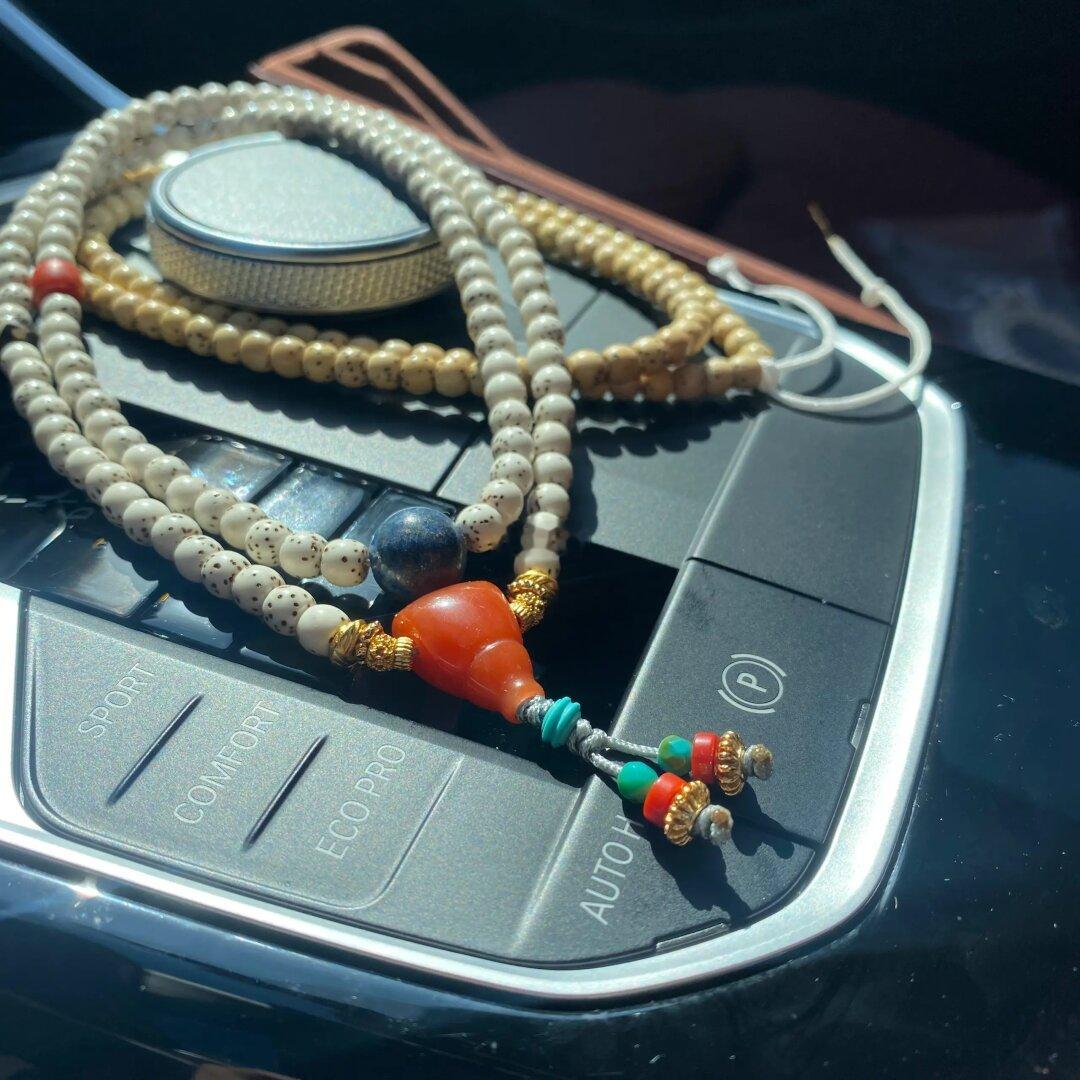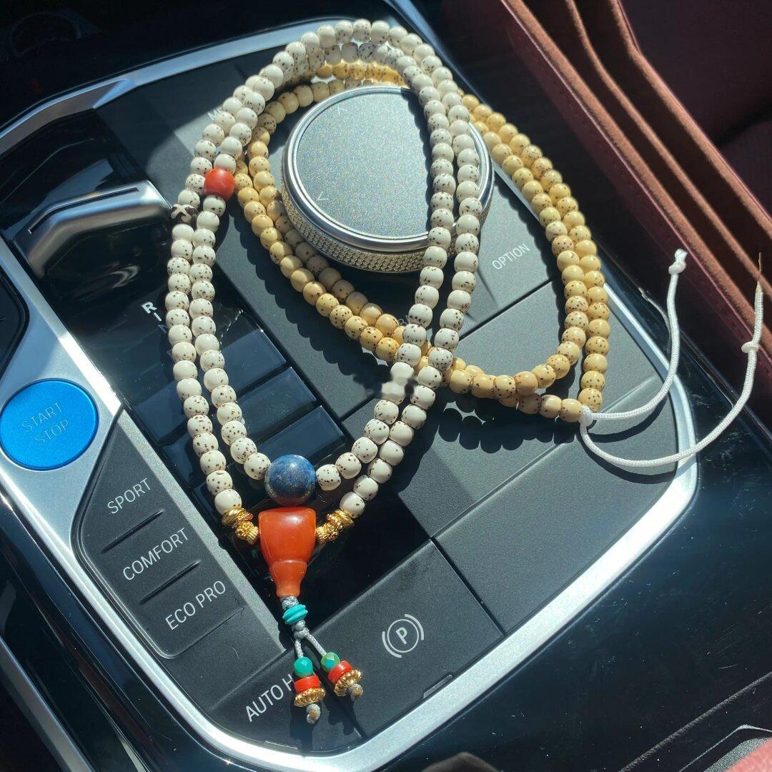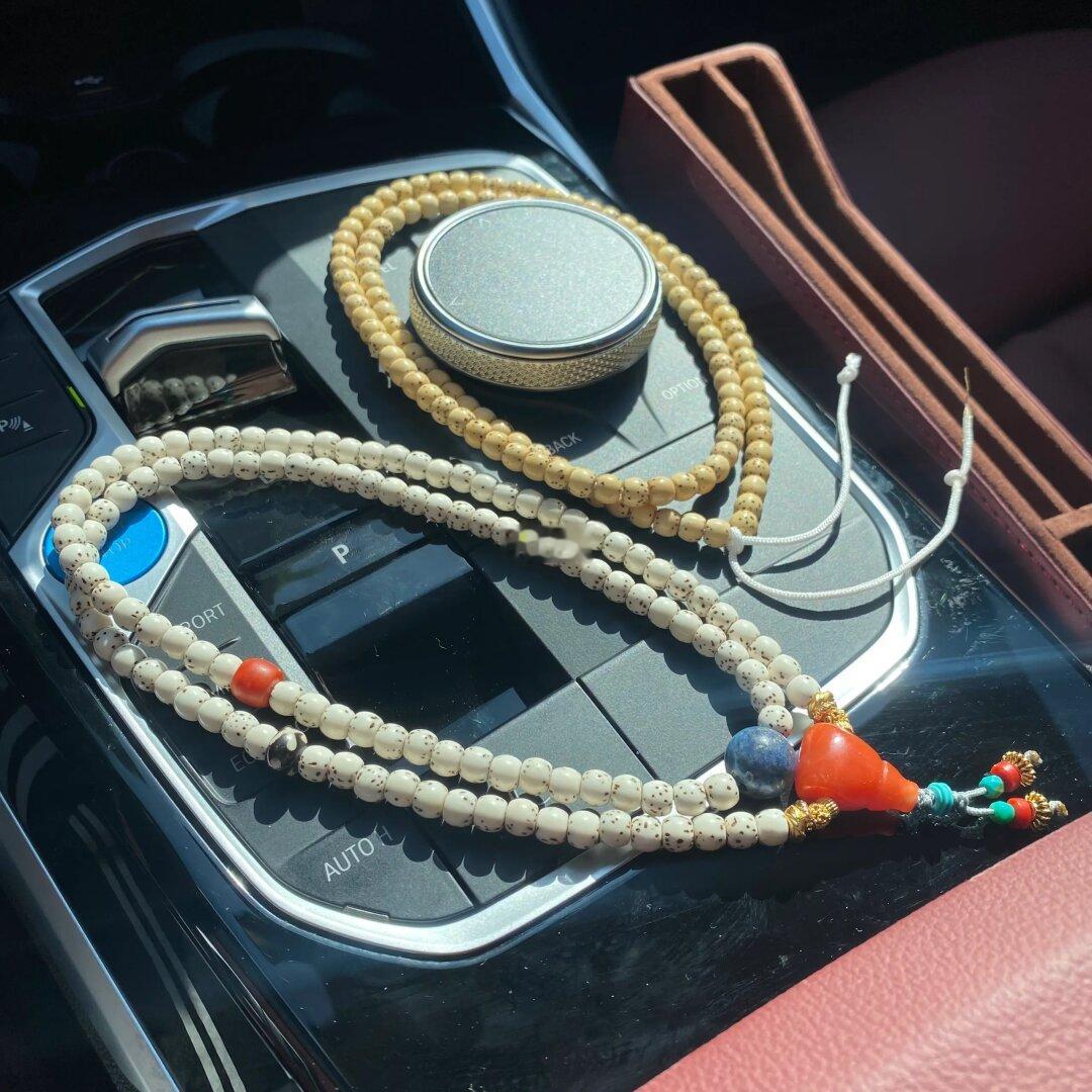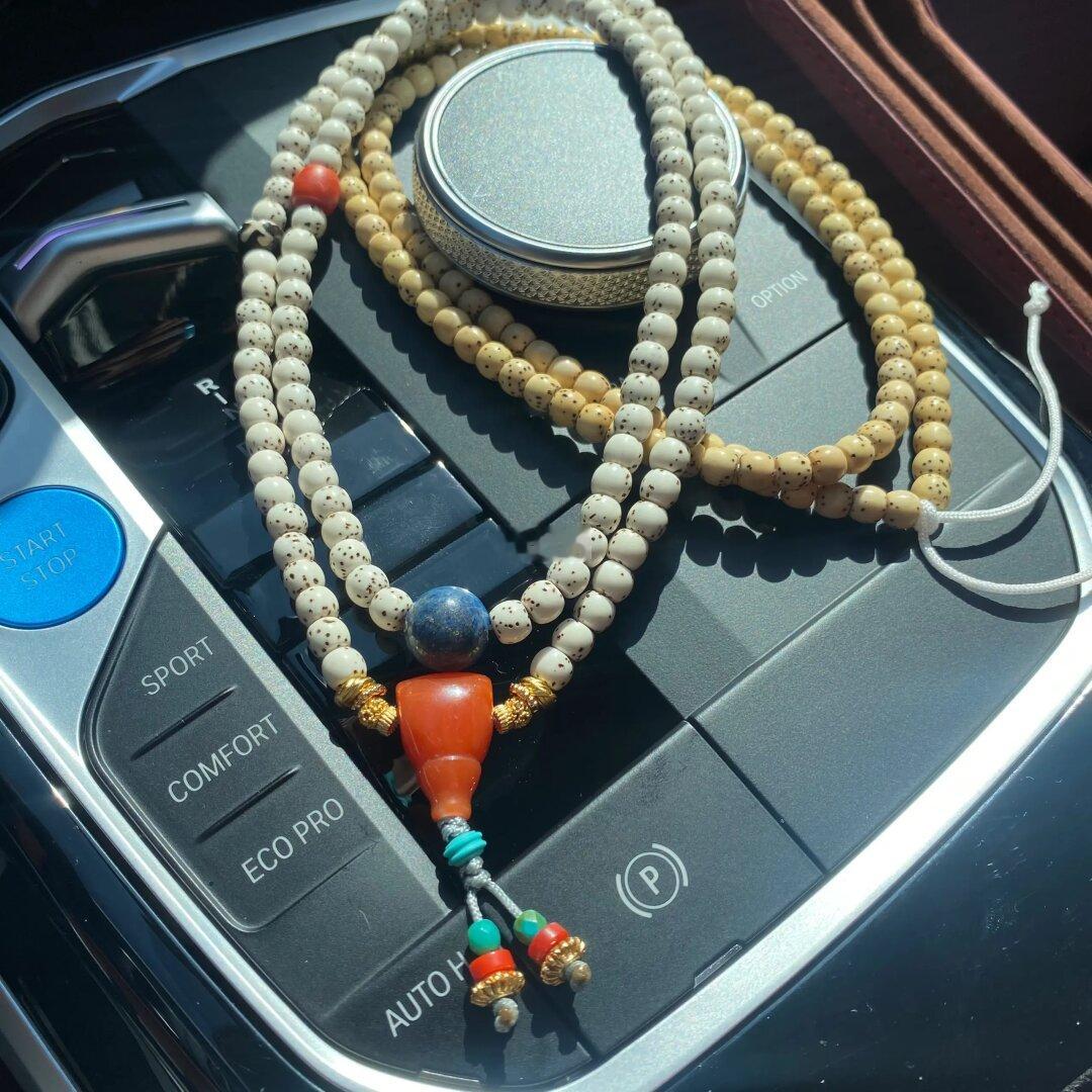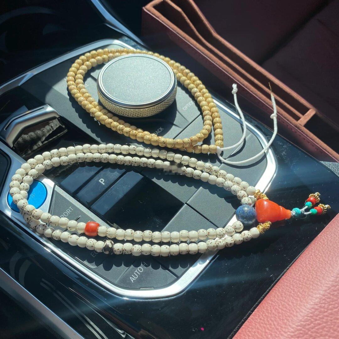 从秋到冬 从过去到未来 开始~总有一串文玩星月陪伴你[红色心形R][红色心形R] 【品名】海南星月菩提大留白 【佩戴】108颗手链 项链 【尺寸】6*5微倒角直切 【搭配】青金石,南红,天珠,合金,绿松石,整体一套搭配。雅致大方时尚潮流。 (作者):符符师傅与玩友共同设计。
