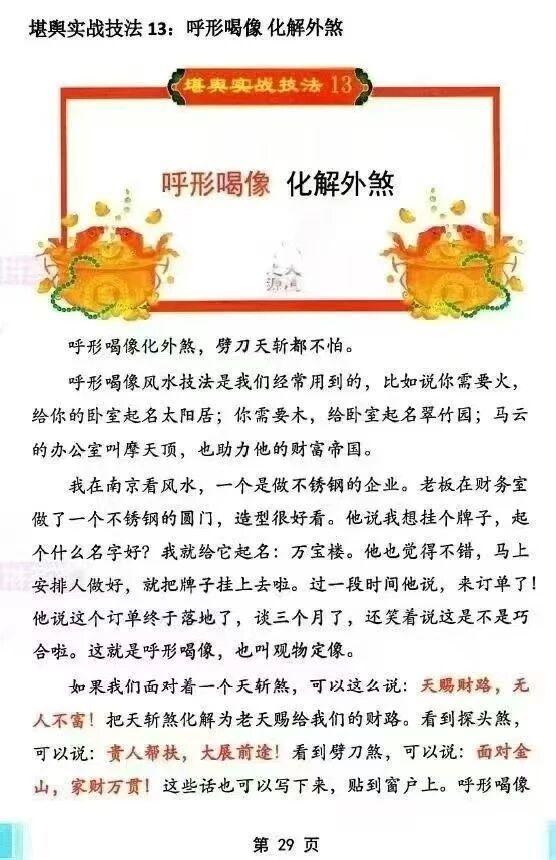 同时,该书针对性解答实践难点与误区,强化实战价值。如区分真穴与假穴,总结 “看砂水、查气场、验土壤” 三验证法;化解凶煞提供 “方位调整、器物化解、布局优化” 多元方案,并标注适用场景与注意事项,避免方法误用。这种 “直面问题” 的设计,使其成为堪舆实践 “工具书”,新手与资深从业者皆能获针对性指导。