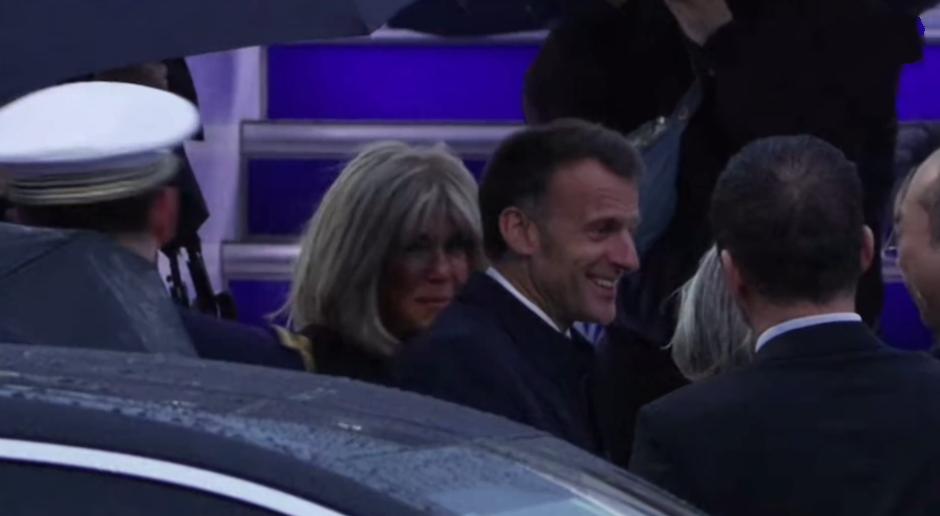从曝光的画面我们可以看出,马克龙和夫人挽着胳膊走下飞机,非常惊喜的是法国第一夫人布里吉特还穿一条鲜艳的红裤子,在机场非常抢镜。可惜的是当天下着雨,所以他们在机场也就短暂的停留就匆忙离开了。下飞机的时候,飞机旋梯也被遮挡起来,所以我们很难看清法国第一夫人的整体造型。