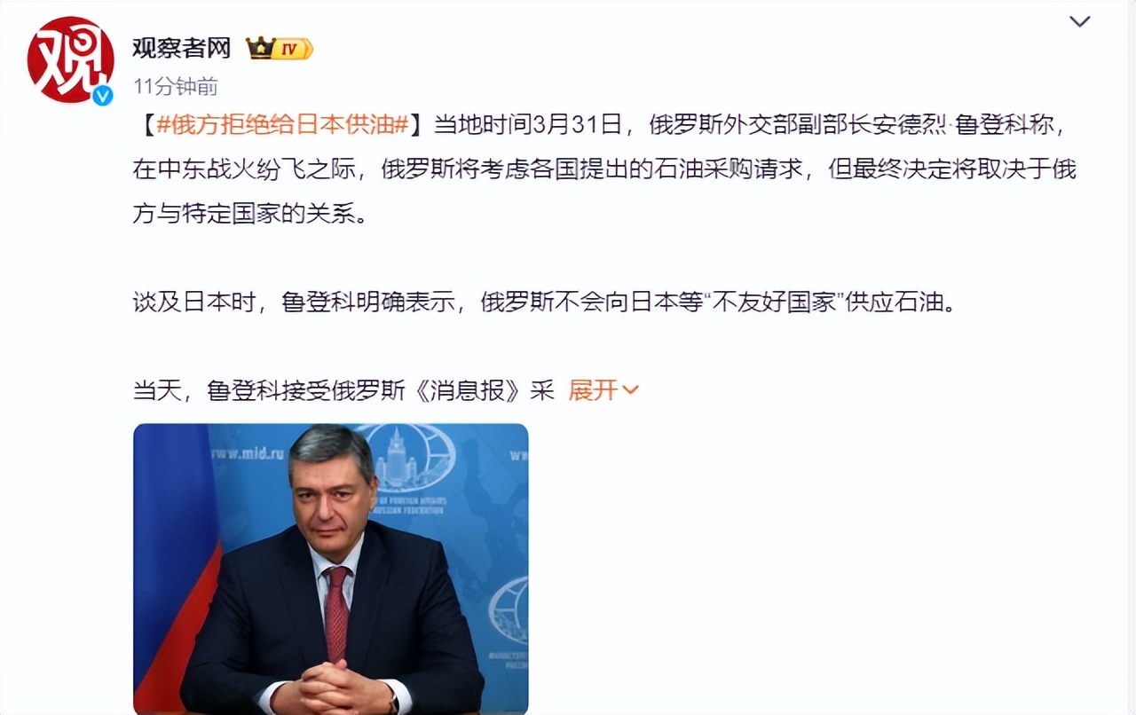 更加让人意外的是,在印尼总统和马克龙访问日本期间,俄罗斯却给日本一个“大礼”。当然了这个“大礼”可不是对日本有什么好处,而是俄罗斯拒绝给日本供油了,要知道日本现在石油非常短缺,他们国家的石油能源几乎是全部进口,现在美伊冲突又没有好转,俄罗斯又不给日本供油了,不知道接下来日本该怎么办。