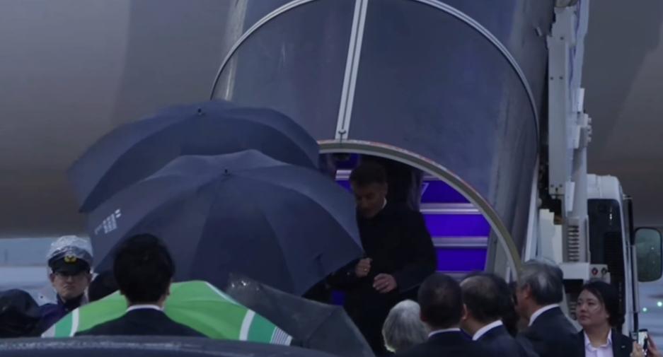 非常巧合的是,印尼总统还没有离开日本,马克龙携带夫人又来日本访问了,据悉马克龙要在日本访问三天的时间,随后马克龙还要去韩国访问,有媒体透露,马克龙来日本主要也是为了石油能源问题,想办法解决这个难题。也许最近全世界都进入雨期了,马克龙和夫人抵达日本东京羽田机场的时候还刚还下着雨。