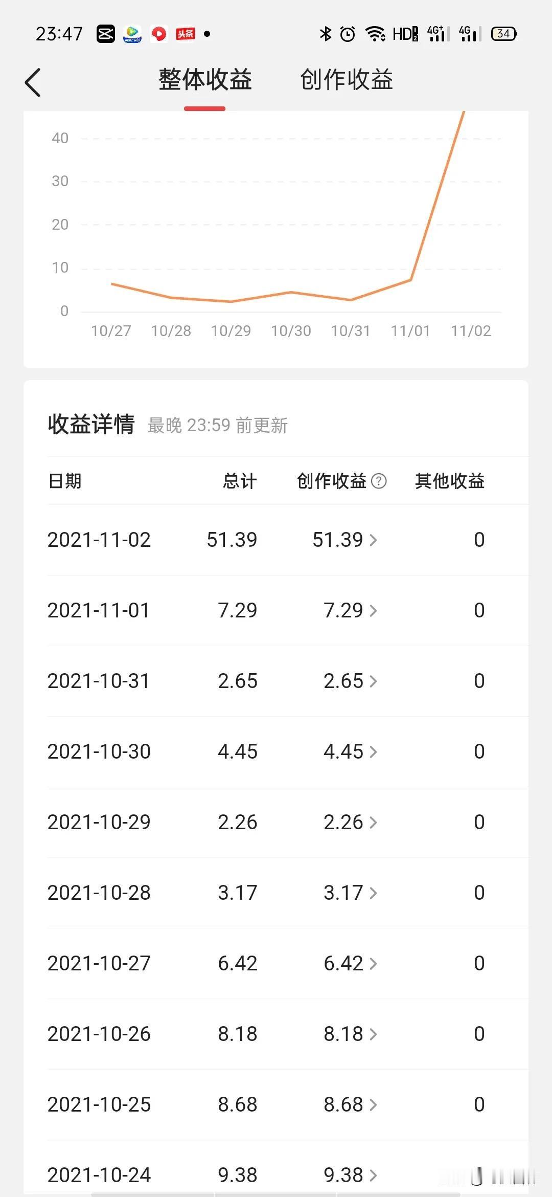 收益终于从个位数涨到十位数了。一个月前出了一款爆文,单个作品收益600多,这对于那些大咖来说或许不算啥,但对我来说是大钱,后来没咋更新视频,收益慢慢滑到了个位,今天有回到了十位,你们的收益都多少了,一起报团取暖吧!