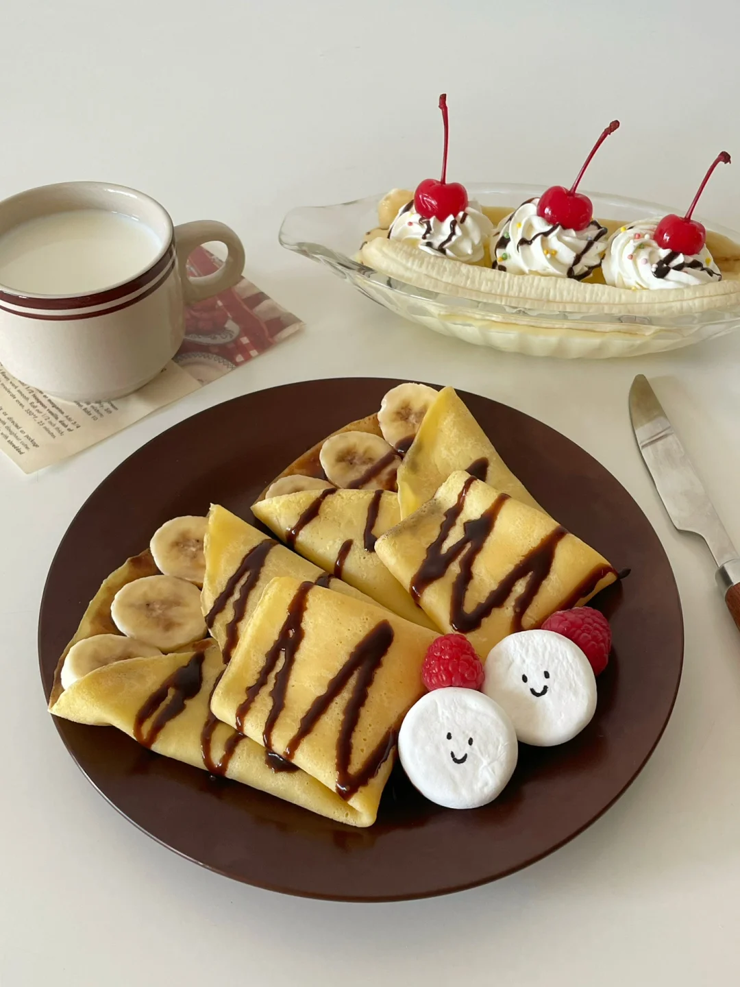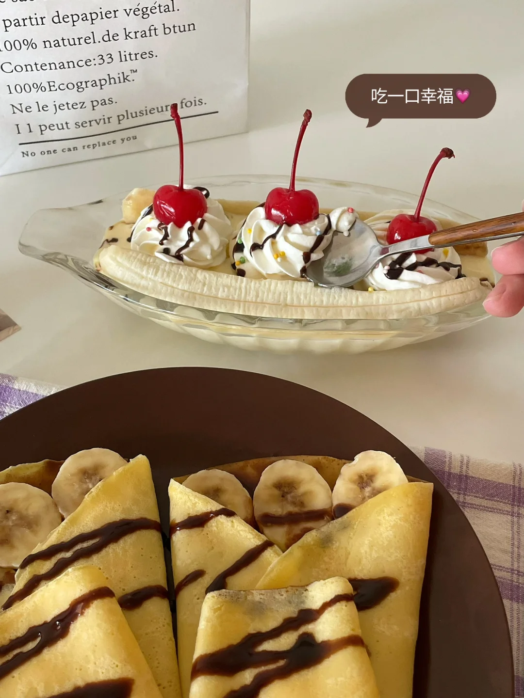做了我心心念念的香蕉可丽饼好喜欢还有香蕉船诶!