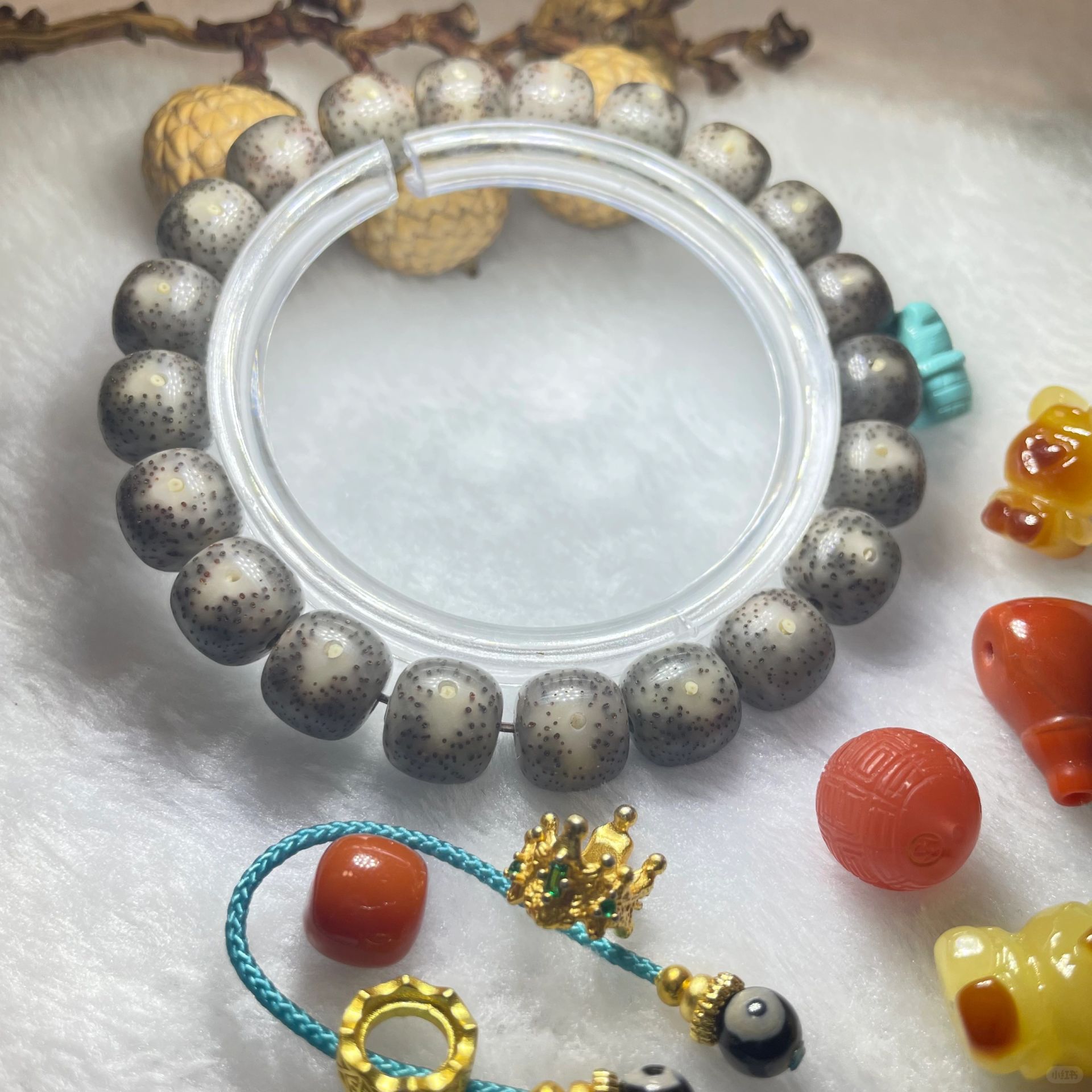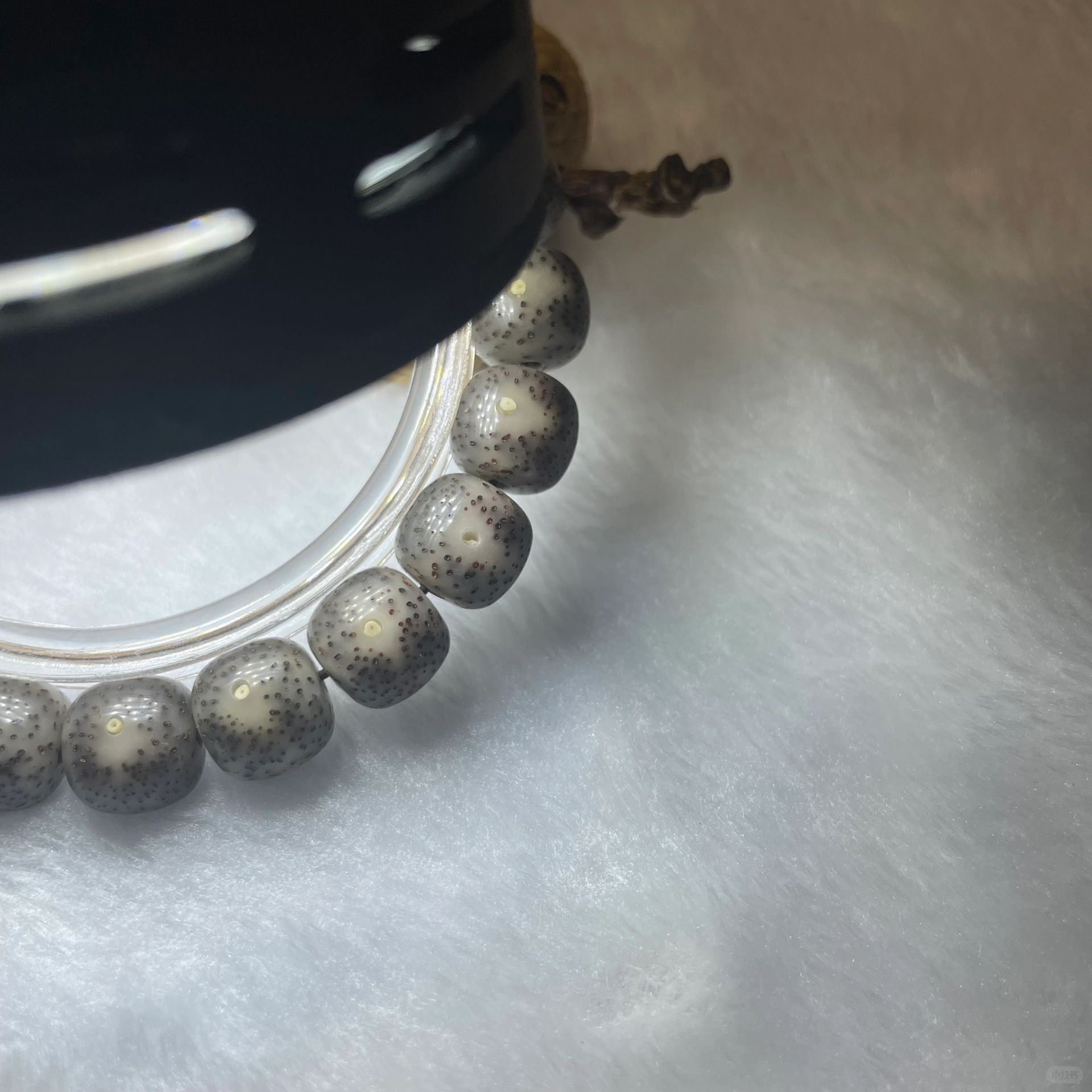 骨瓷奶奶灰星月单圈 玉化料 肉眼可见的冰透 果冻 11*10老型桶珠油润度惊人 手感极佳 越盘越润