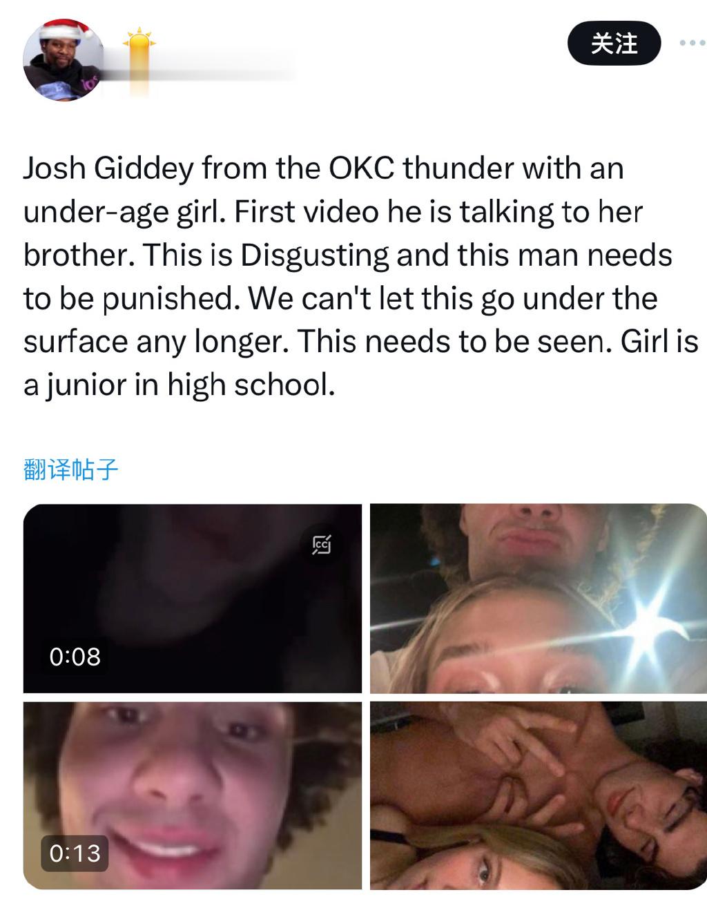 今日,有美网友爆出雷霆球员约什-吉迪未成年女生约会的照片,表示吉迪与该女子进行约会,这次事件登上了热搜,曝出的图片上写着”刚和基迪发生X关系“的字眼,有细心的网友发现,该女生的大多数好友都是高中生和未成年,所以该女生很大可能也是一位高中生,甚至有网友称,该女生只有15岁。