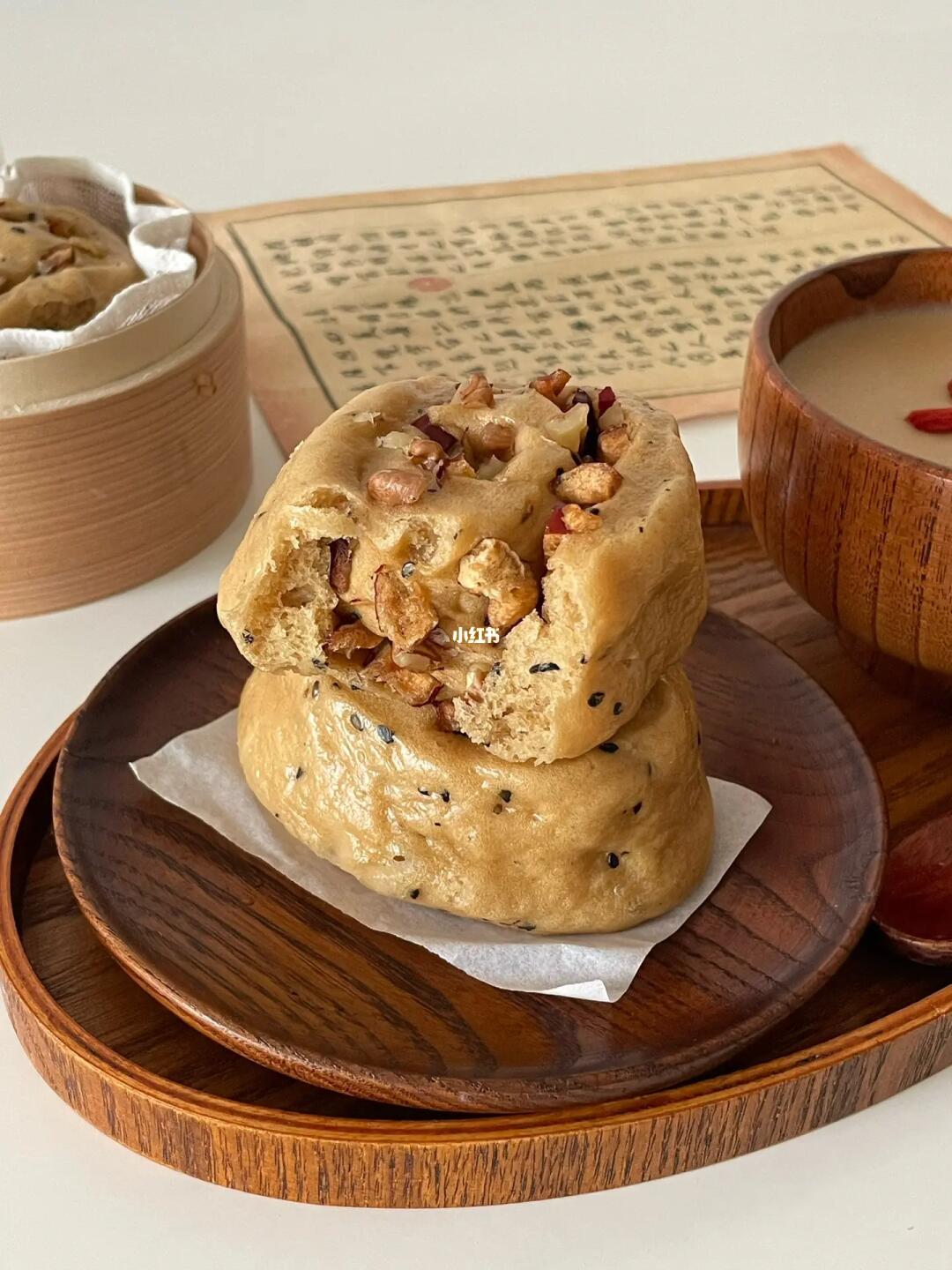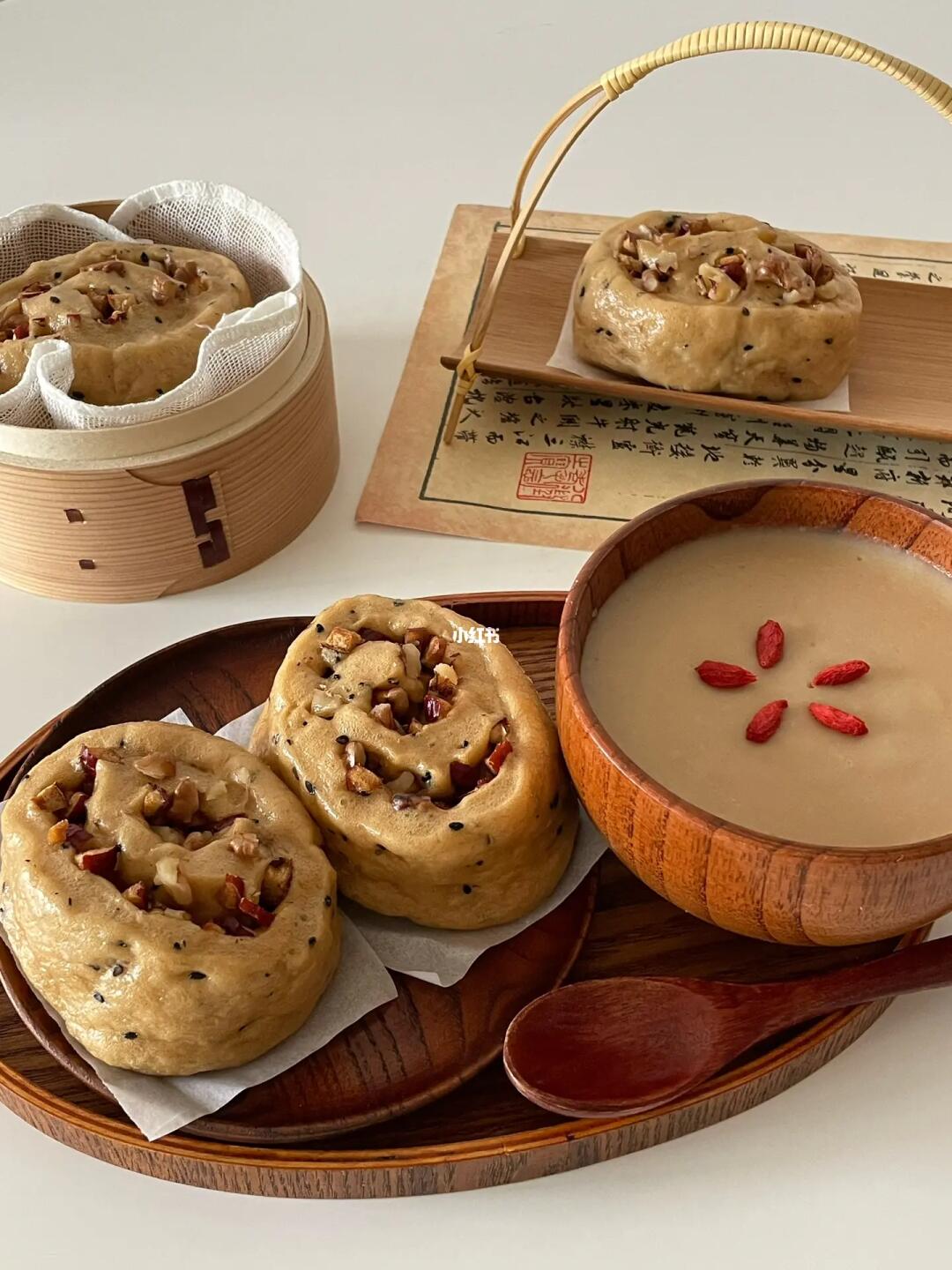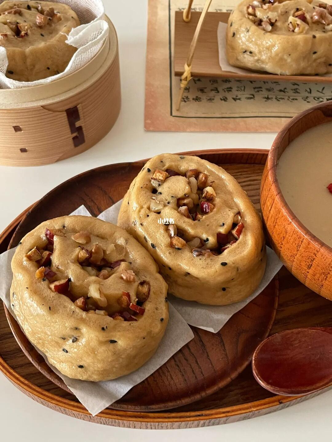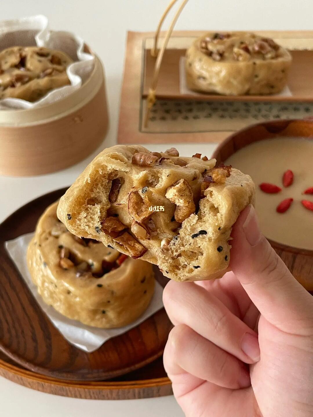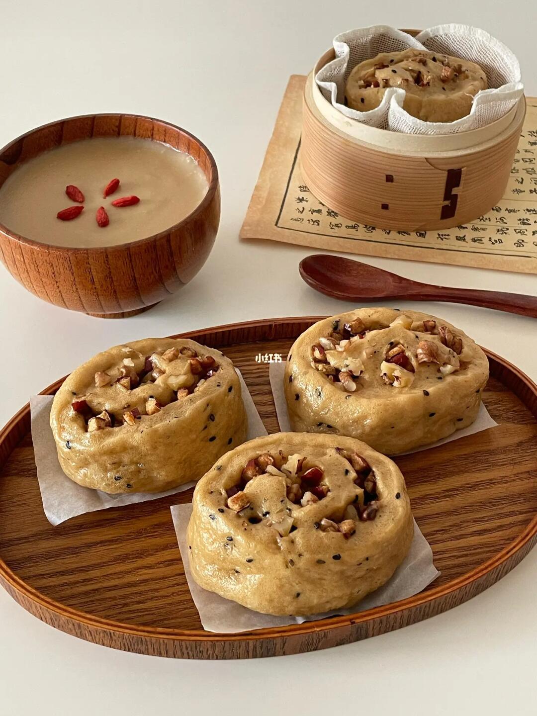 今日份养生早餐🥢在家做了红枣核桃馒头🫘