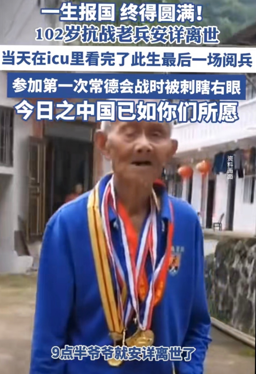 9月3日,北京天安门广场上空礼炮轰鸣,纪念中国人民抗日战争暨世界反法西斯战争胜利80周年大会隆重举行。举国同庆的时刻,一位百岁老人在千里之外的湖南张家界桑植县ICU病房里,用浑浊却坚定的目光,透过手机屏幕注视着这场盛大的阅兵仪式。他叫彭长竹,102岁的抗战老兵,曾亲历战火纷飞的年代,用血肉之躯捍卫家国尊严。没有人想到,这场阅兵,竟成了他人生最后一场庄严的告别。