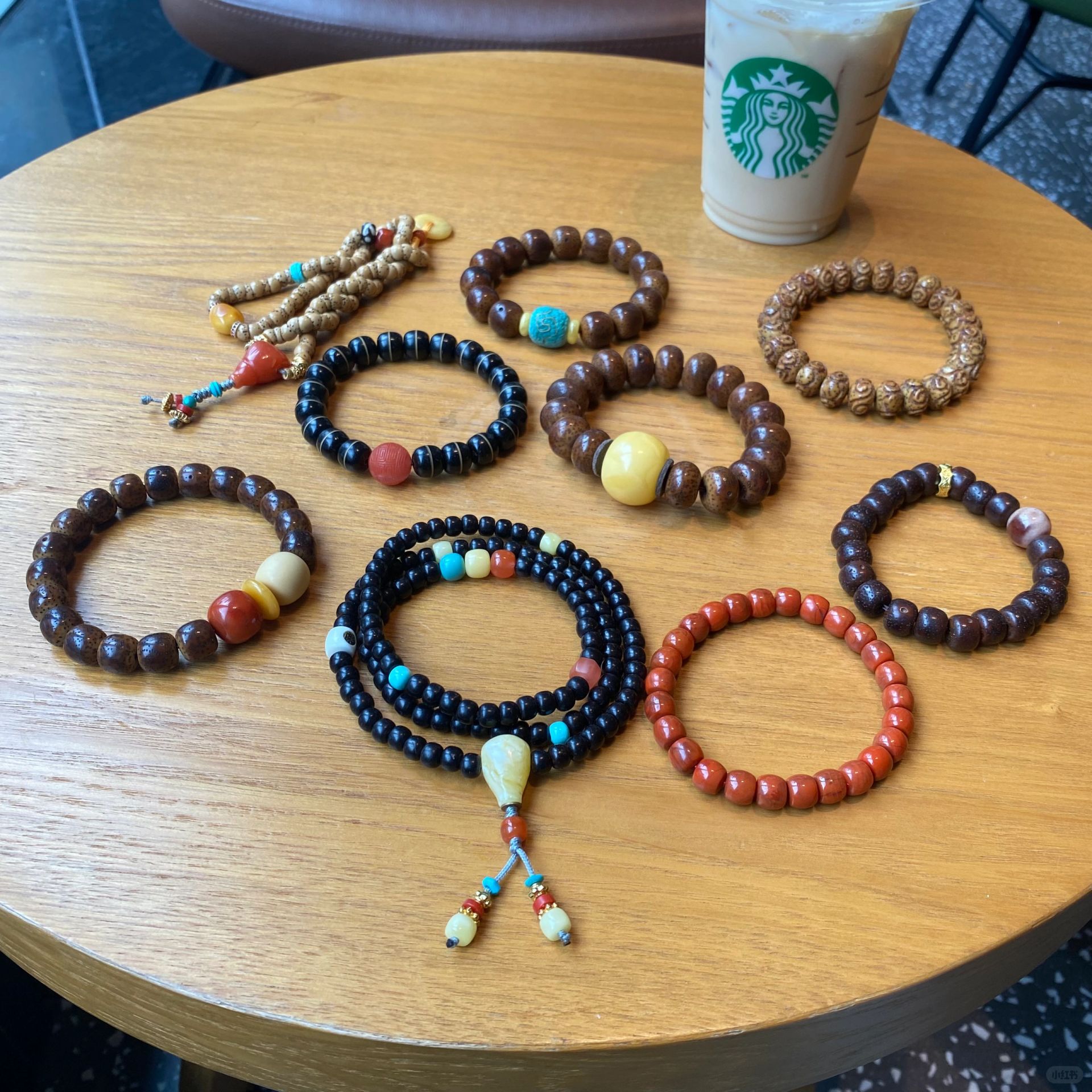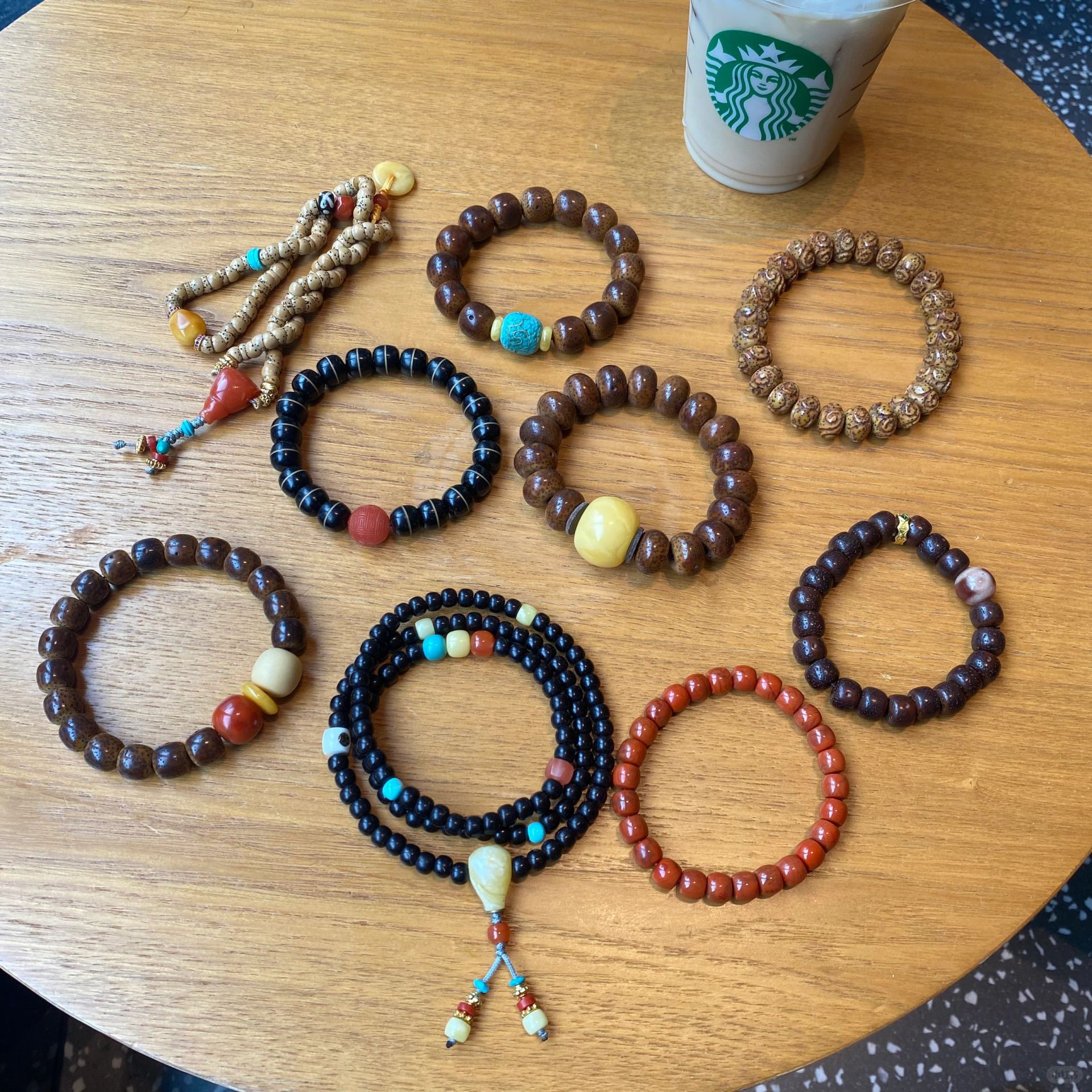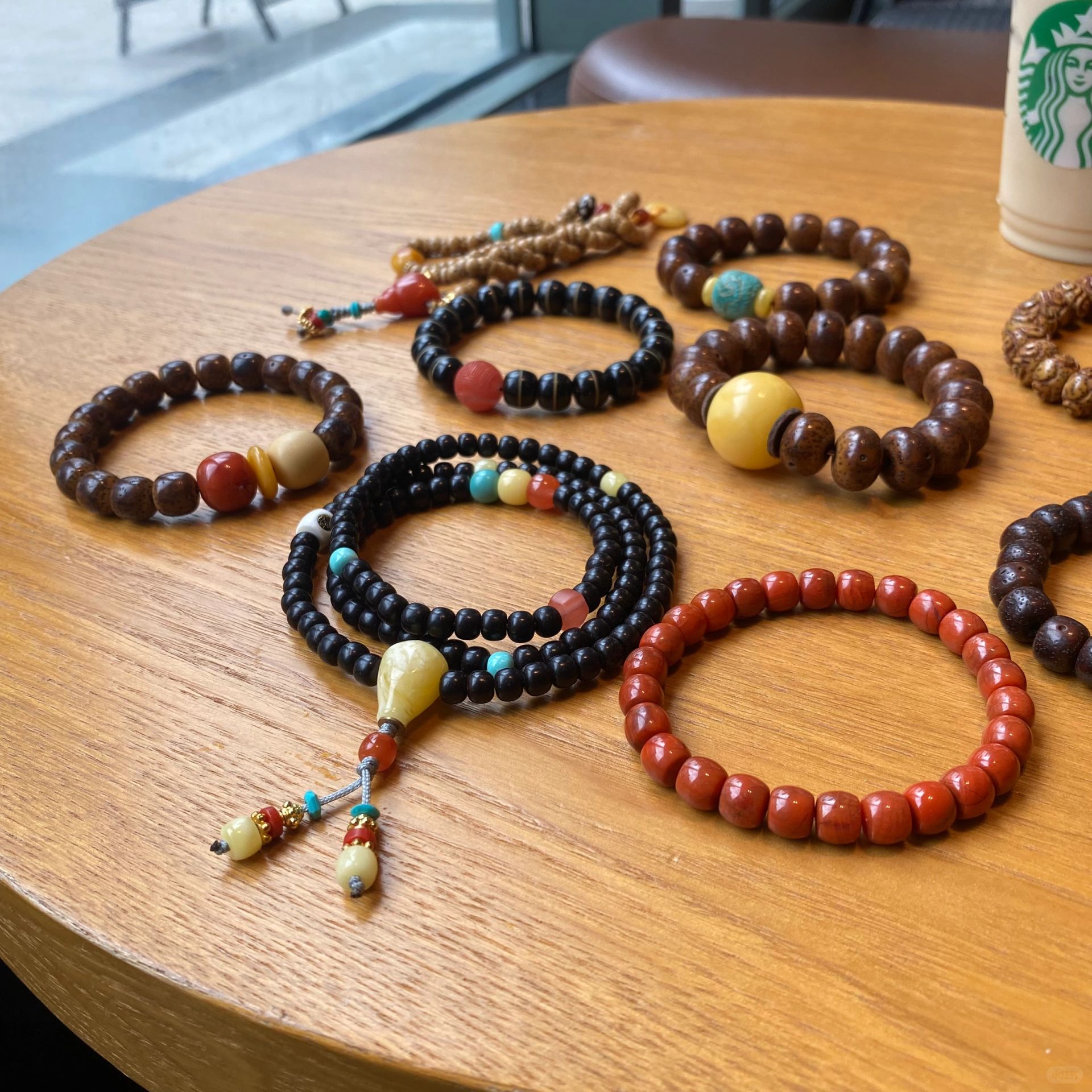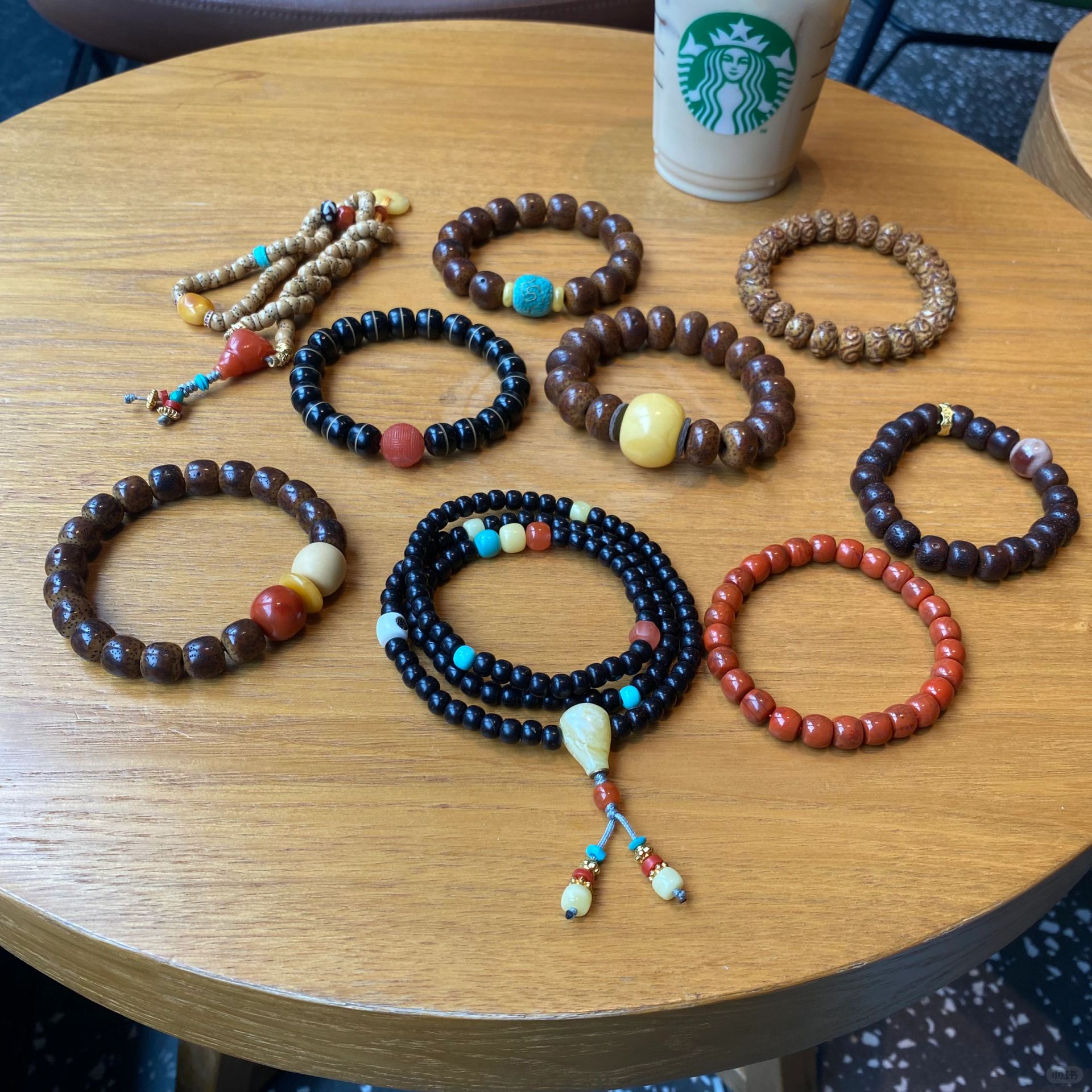 文玩 星月大肠 星月单圈 蜜蜡 绿松石 南红 椰蒂