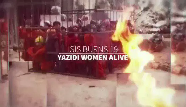 ISIS在笼子里公开焚烧19名雅兹迪性奴隶,