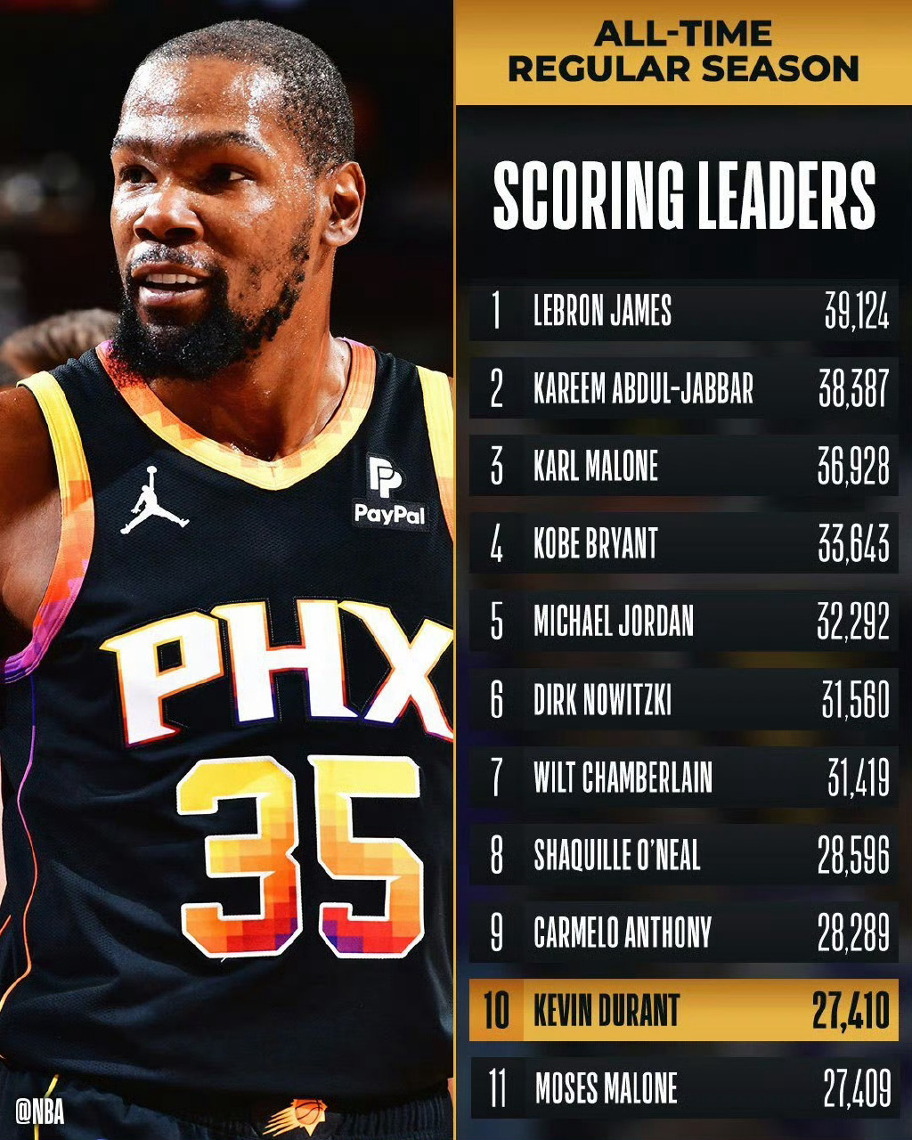 #杜兰特历史得分榜第十# #看NBA上咪咕#