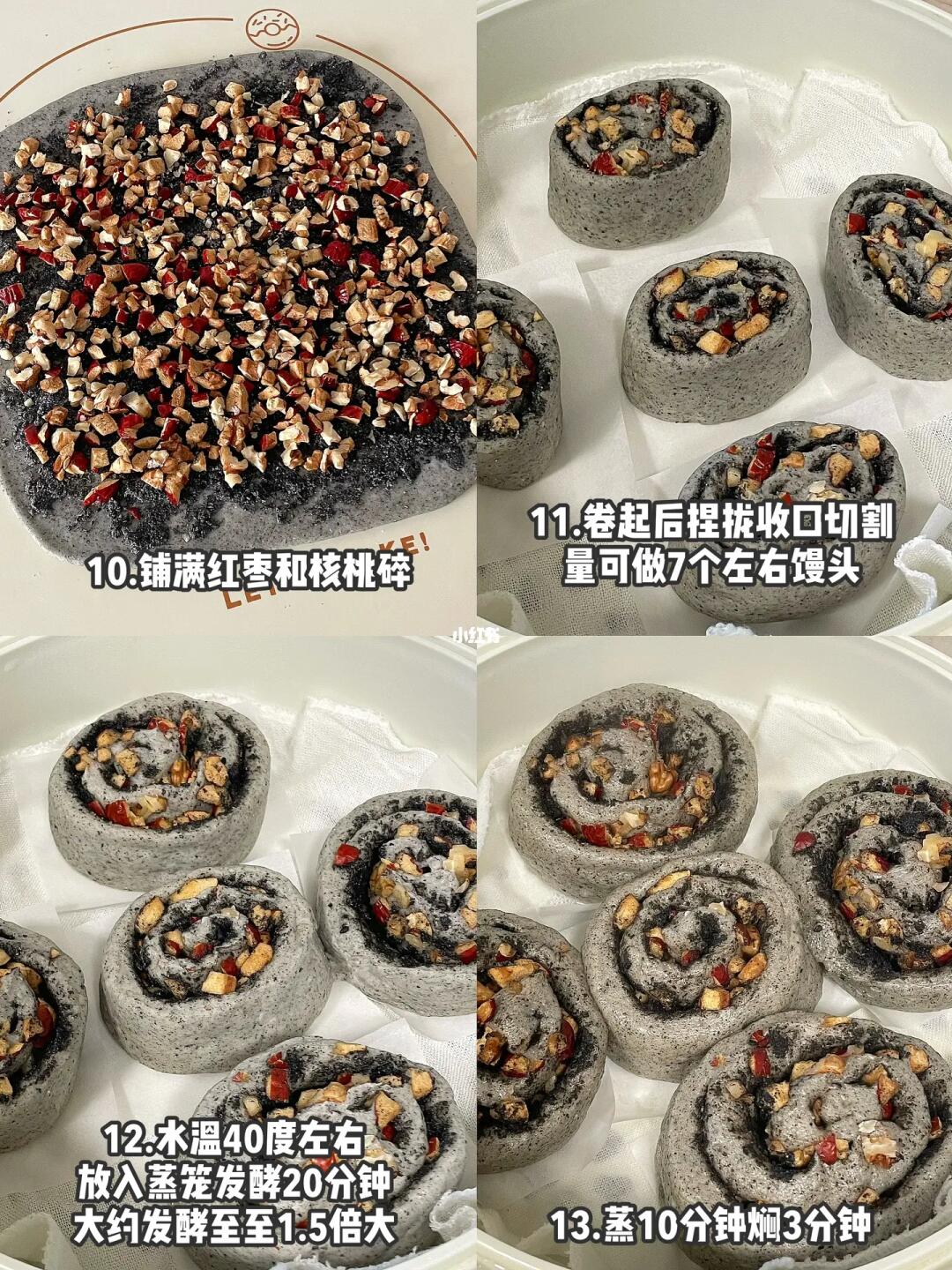 在家又安排上了馒头!这次做了黑芝麻和红枣核桃的组合版👀养生又美味🤤搭配黑芝麻糊~以黑养黑☺️太幸福啦!