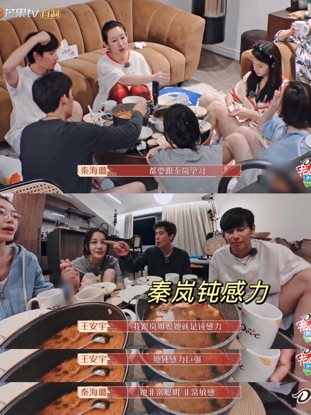 好羡慕秦岚的钝感力!性格太好了,通透又乐观,一点也不内耗。迪丽热巴订餐厅不小心订错时间,导致大家白跑一趟,热巴自责了很久,其他伙伴太暖心了,主动说回家做火锅吃,不断地安慰热巴不要在意。大家一起做火锅吃也是超级欢乐,一点也不比在高档餐厅吃的差。还好有秦岚和热巴搭档,一个认真,一个心态好,“丽挽狂岚”上大分!