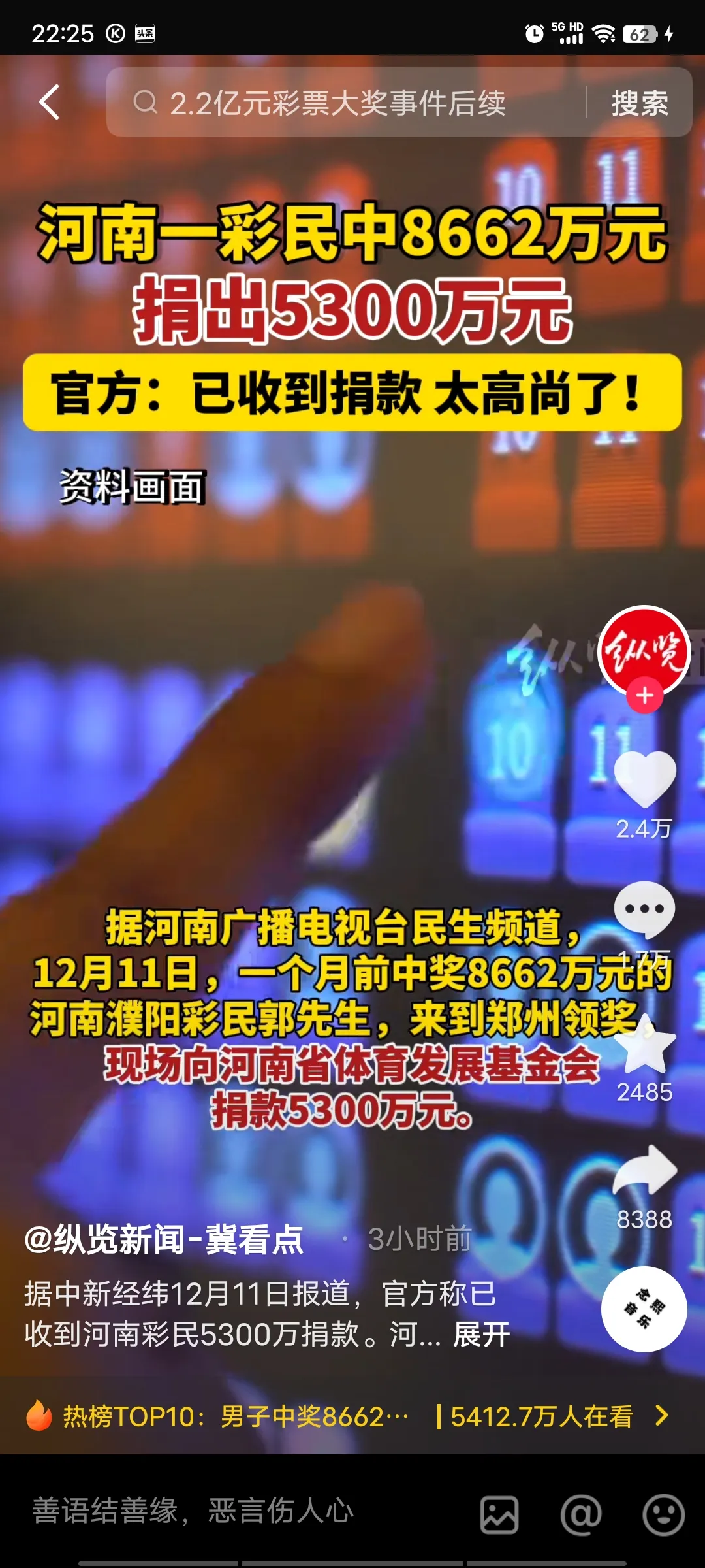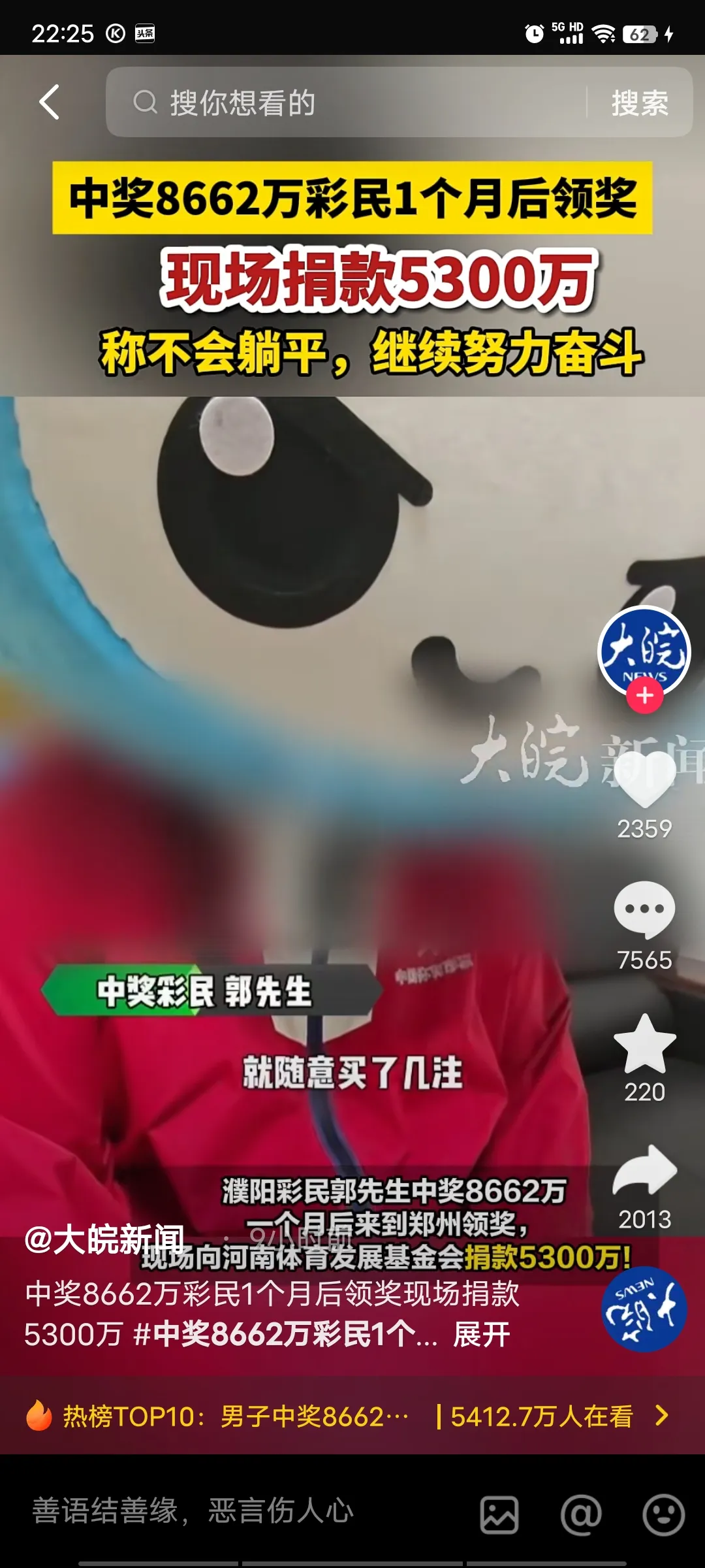 就在今天,一个河南彩民,100块钱随机5注10倍大乐透,竟然中了8662万,让人疑惑的是,他当场捐出去5300万。
