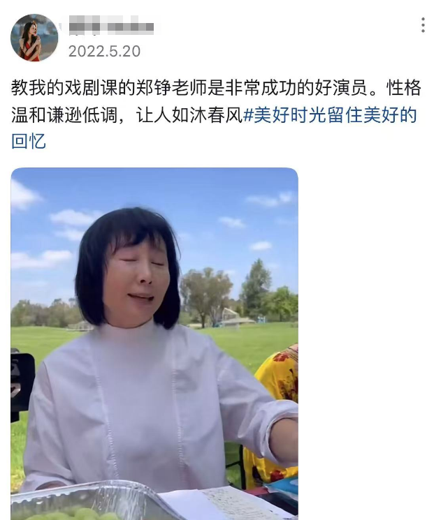 2022年有学生曾发布过郑铮老师上课的视频,定位显示在美国,想来受丈夫的影响,她不拍戏的日子是去当戏剧课的老师了,把自己的演戏经验教给学生们。