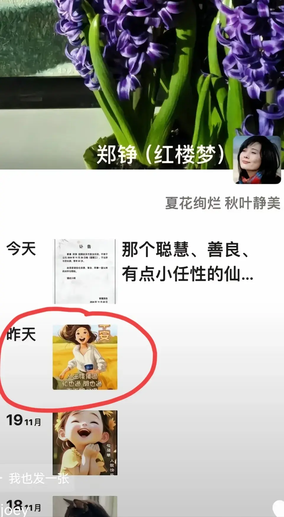 而她去世的前一天也发布了动态,是一张平安的图片,这时人还好好的,没想到走得那么突然。