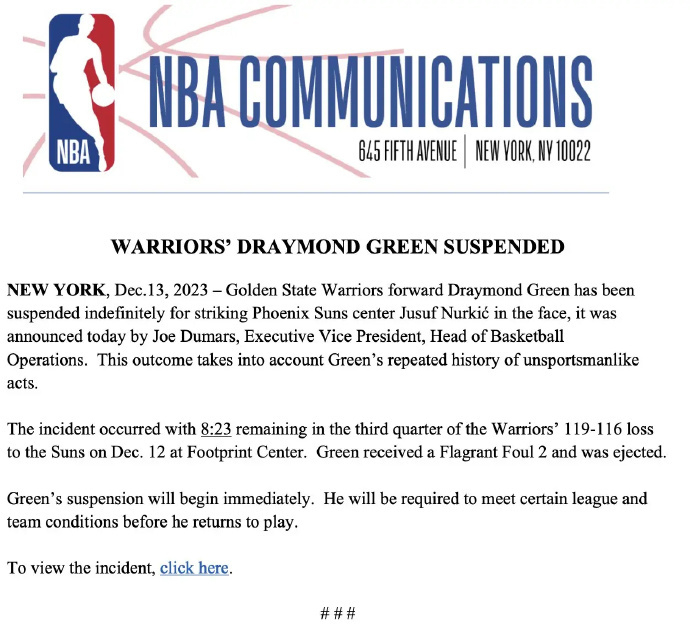 #NBA无限期禁赛格林##尼克杨说格林会很多格斗动作#