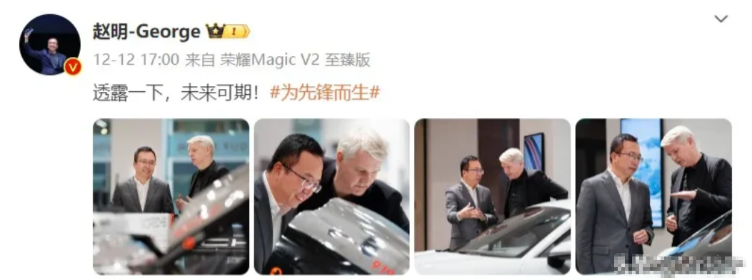 近日,荣耀CEO赵明与保时捷高管的合照曝光,官宣了两大品牌的合作。这一消息立即引起了全球范围内的瞩目和期待。