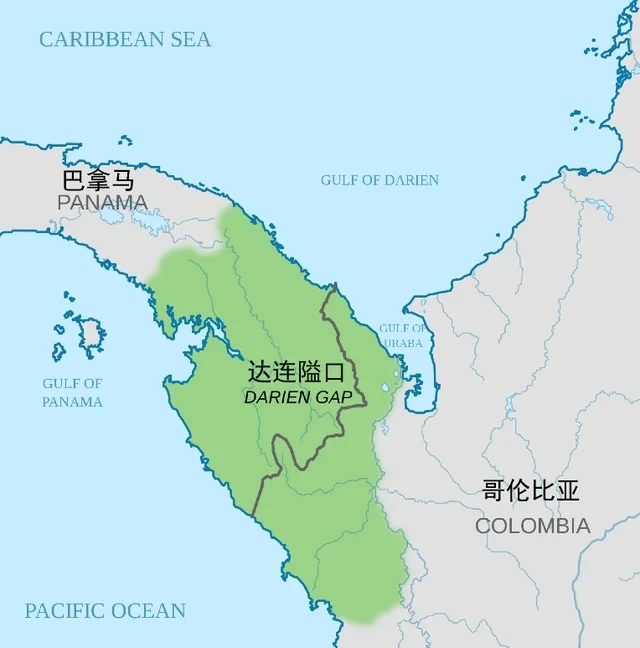 [三R]达连隘口是泛美公路位于哥伦比亚和巴拿马边境处未修通的一段,由大片未开发沼泽和森林组成,位于巴拿马的达连省和哥伦比亚乔科省之间。隘口长160公里,宽50公里,在此处修建公路成本非常高,对环境的影响也十分巨大,因而没有公路通过此处连接南北美洲,成为泛美公路唯一的断点。自20世纪20年代以来,多有探险家使用越野车或者摩托车等交通工具穿越达连隘口。