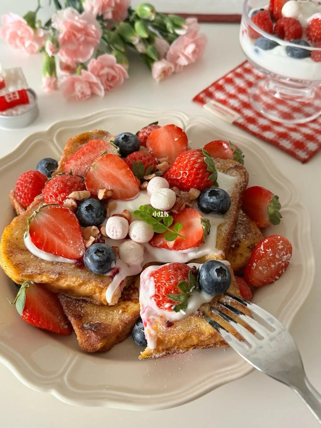 4️⃣再放入草莓蓝莓等水果点缀,撒椰蓉或糖粉装饰即可。