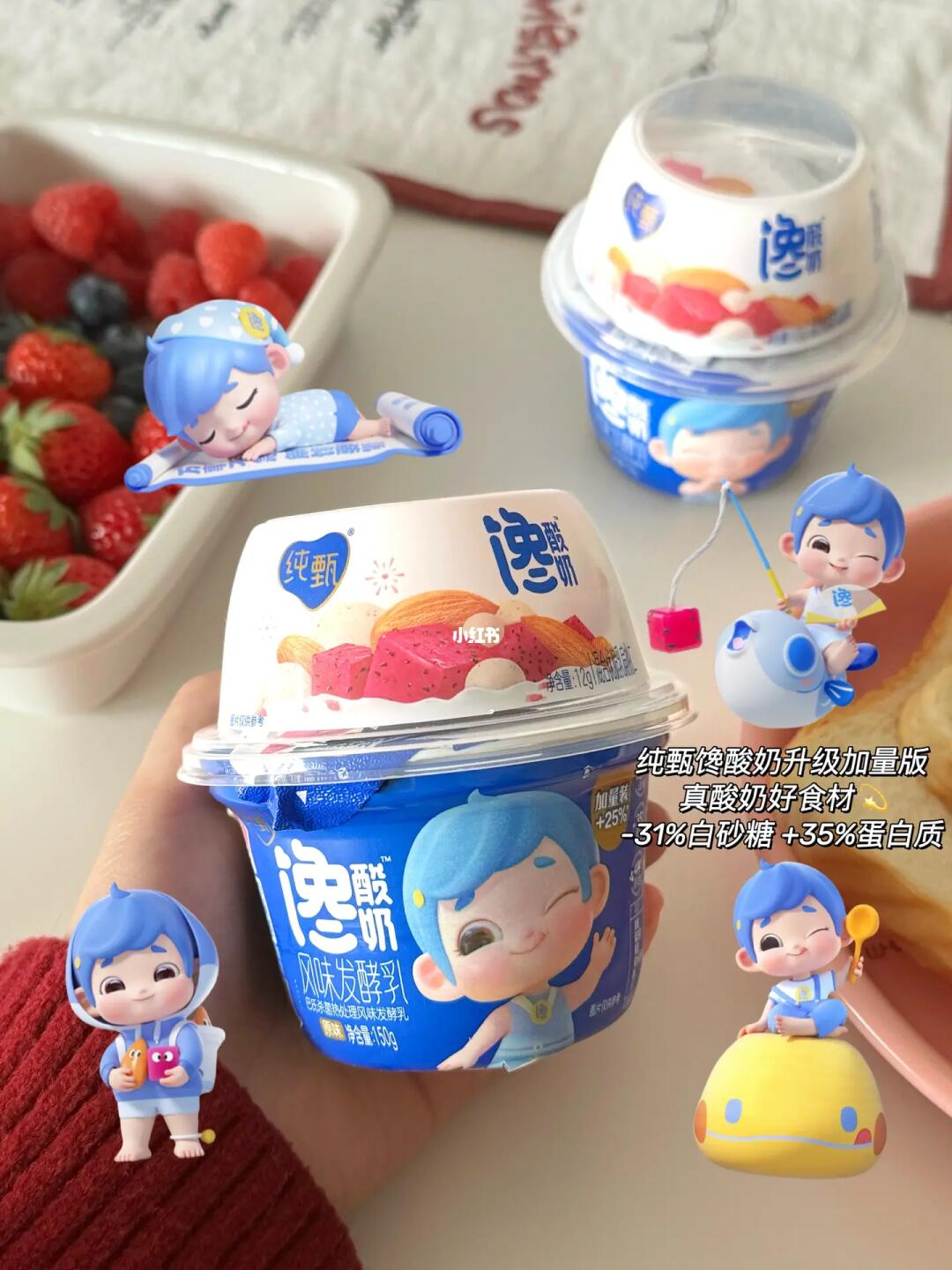 是谁吃到了纯甄馋酸奶升级加量版呀~是我🥰加量了30g酸奶,吃起来更满足惹🥹包装上还搭配上了AI代言人解小馋🍥偷偷告诉你们有四款噢~快一起集齐吧🥰小料超多,有跳跳糖、进口扁桃仁碎、优脆乳和冻干红心火龙果丁~都是非油炸非膨化的 好健康✌️