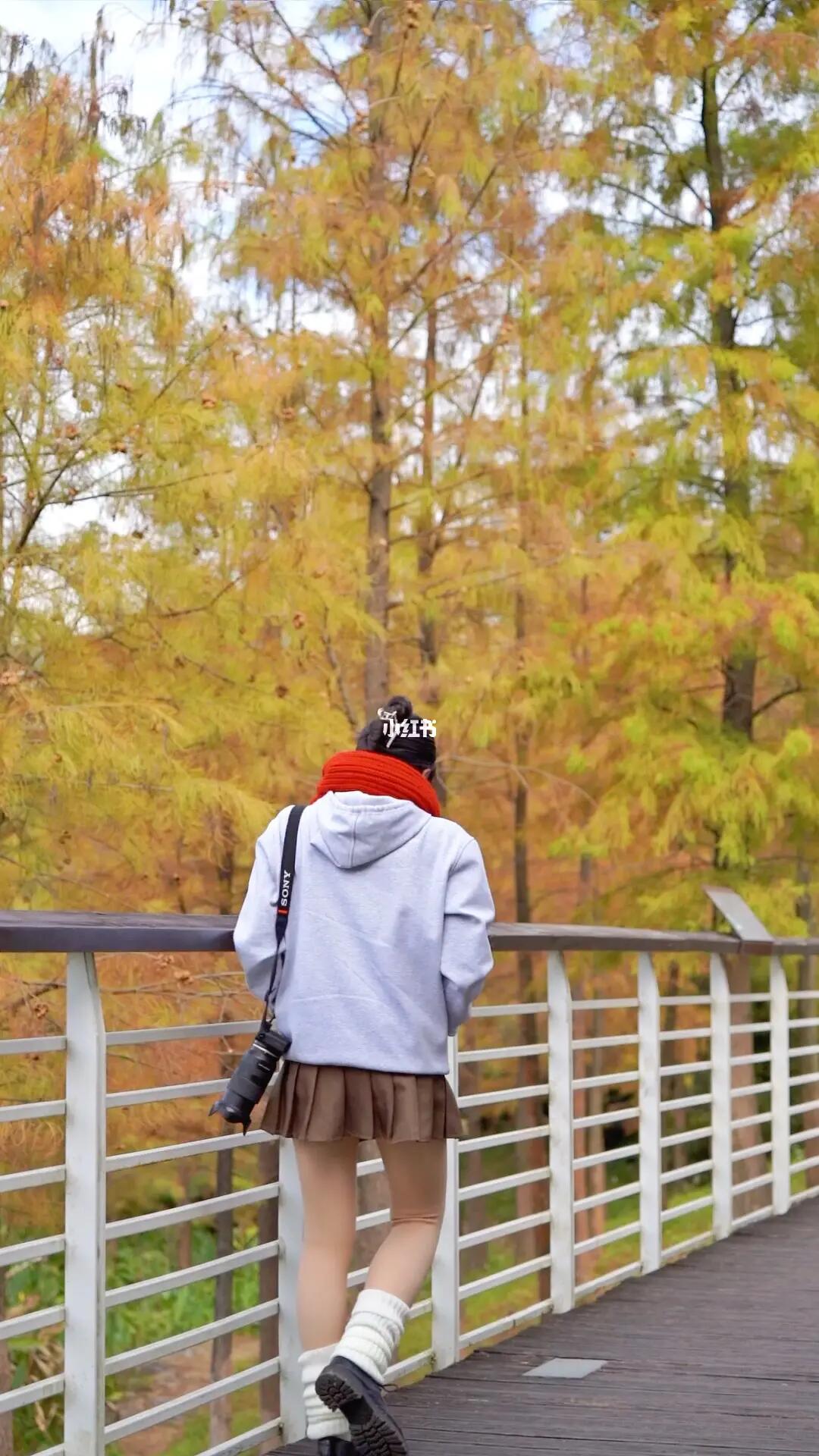 再往前就可以拍桥上的落羽杉,或者站桥上拍下面的落羽杉和人🚶🏻,避开人人人的栈道