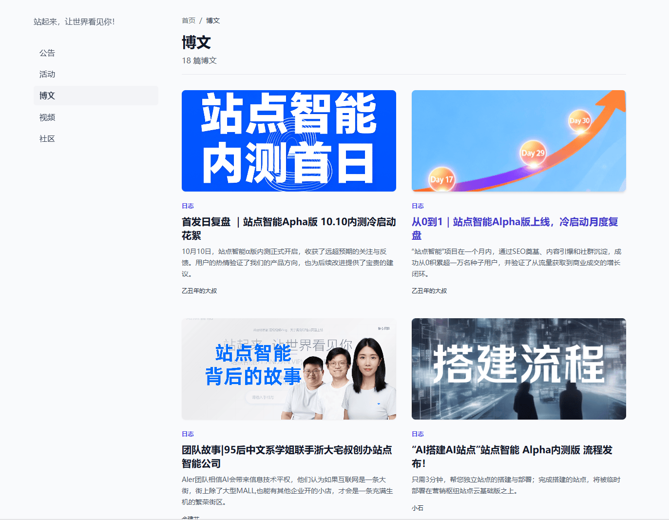 持续发布项目进展(如 α 版内测预告、上线复盘)、行业干货(如 AI 建站流程、冷启动策略),让 AI 平台感知到站点的 “活跃度” 与 “专业性”;