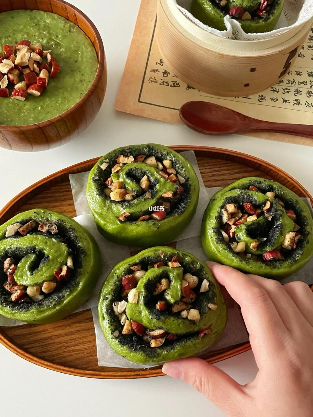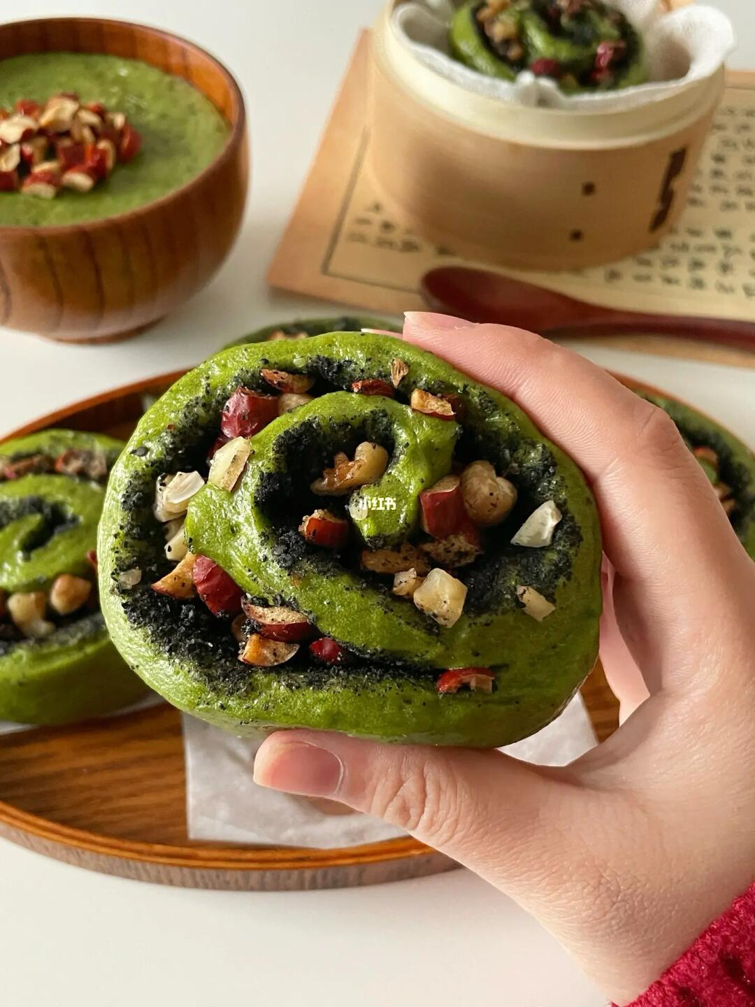 搭配抹茶味的馒头体🍵搭配红枣和核桃~口感丰富🫘每一口都好吃😋一起做起来吧!