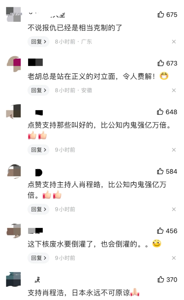 海南主持人对日本说了句报应被停职了,结果出现了一种很搞笑的局面,网友一边倒地支持主持人,主管方面一门心思要处理,胡锡进也入场讲道理,说一是一二是二,虽然有问题但不能一棍子打死,不出意外也被评论区批评了个遍。 国内现在其实挺尴尬的,日本学校,风情街,特色餐饮其实一直都有,也确实起到了一定拉动消费的作用,但大部分底层是不愿意真心接受这些东西的,所以当有人表达一些比较“直观”的情感时,就把心底的声音给引了出来。 说明有些历史,真的是刻在人们心中的。