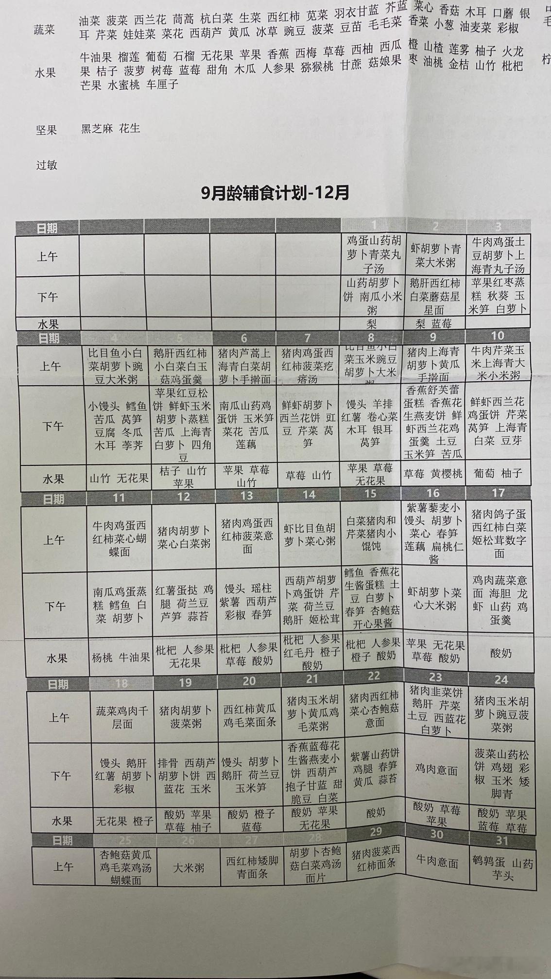 妈妈专门总结了宝宝已经解锁的食物列表,以及近一个月每日食谱:为了让我一目了然。