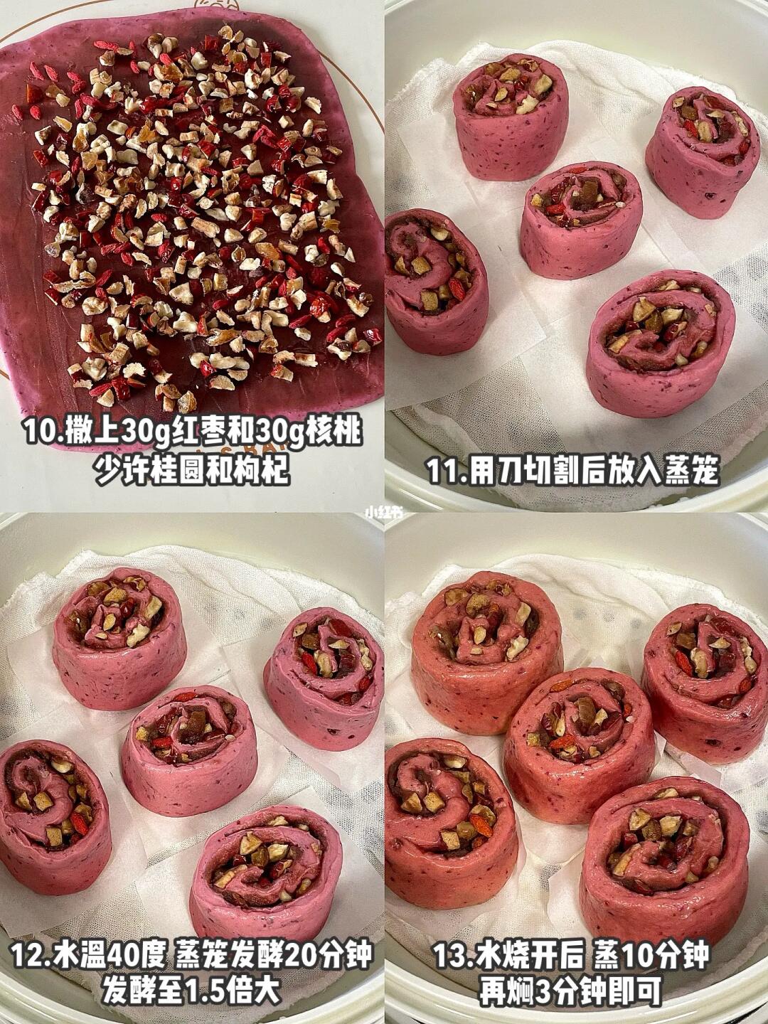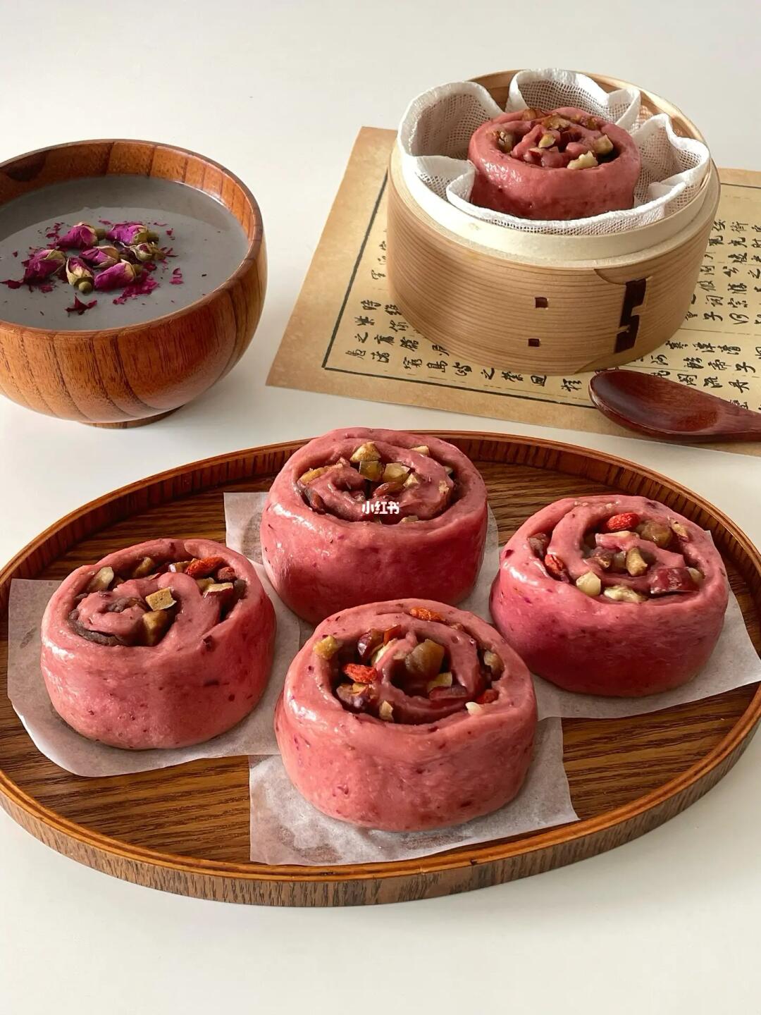 3️⃣玫瑰豆沙红枣桂圆馒头&黑芝麻糊🌷