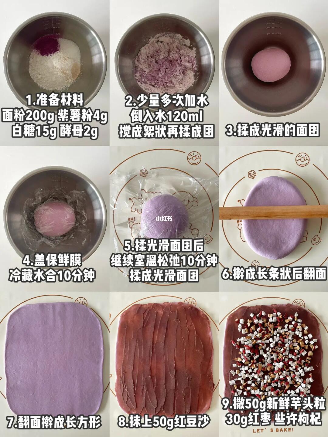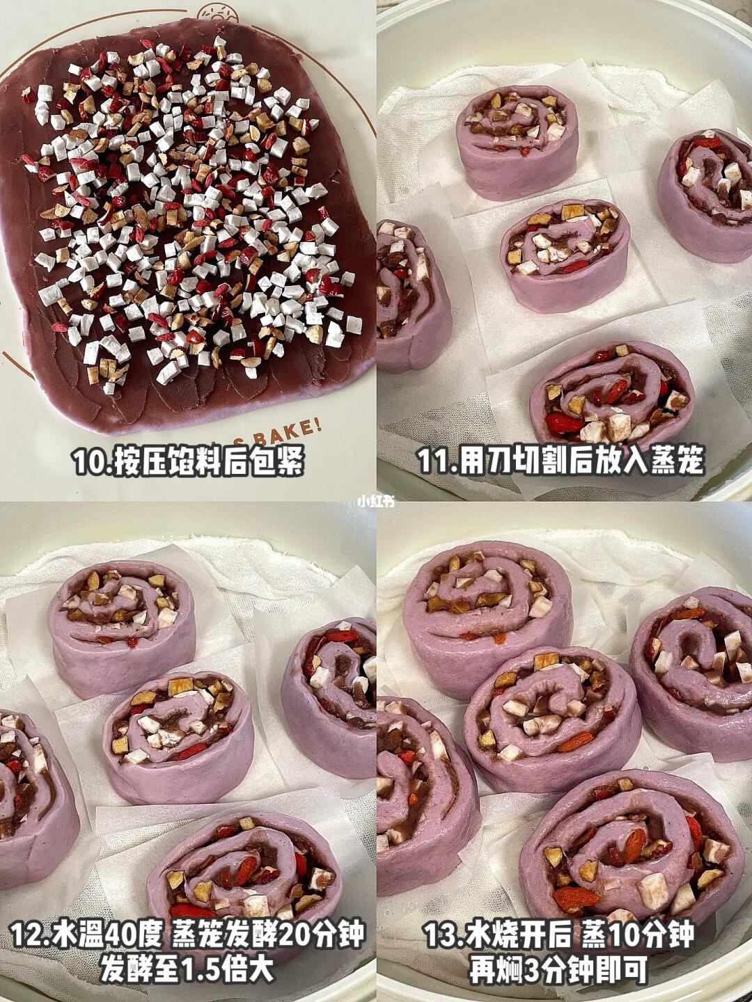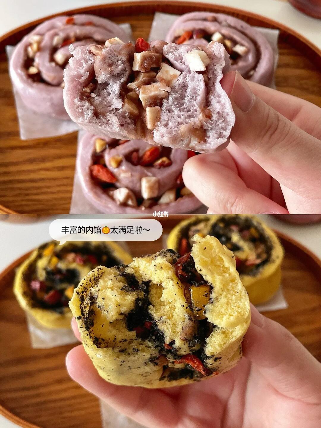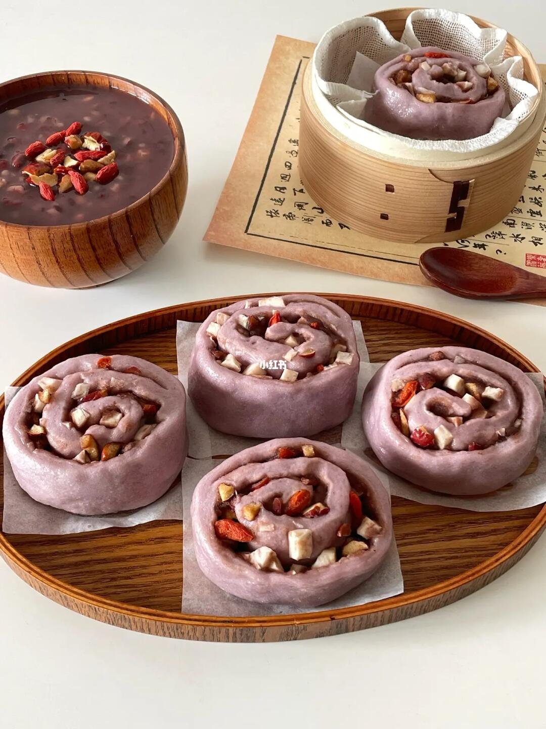 1️⃣芋头豆沙红枣馒头&黑米粥🫘