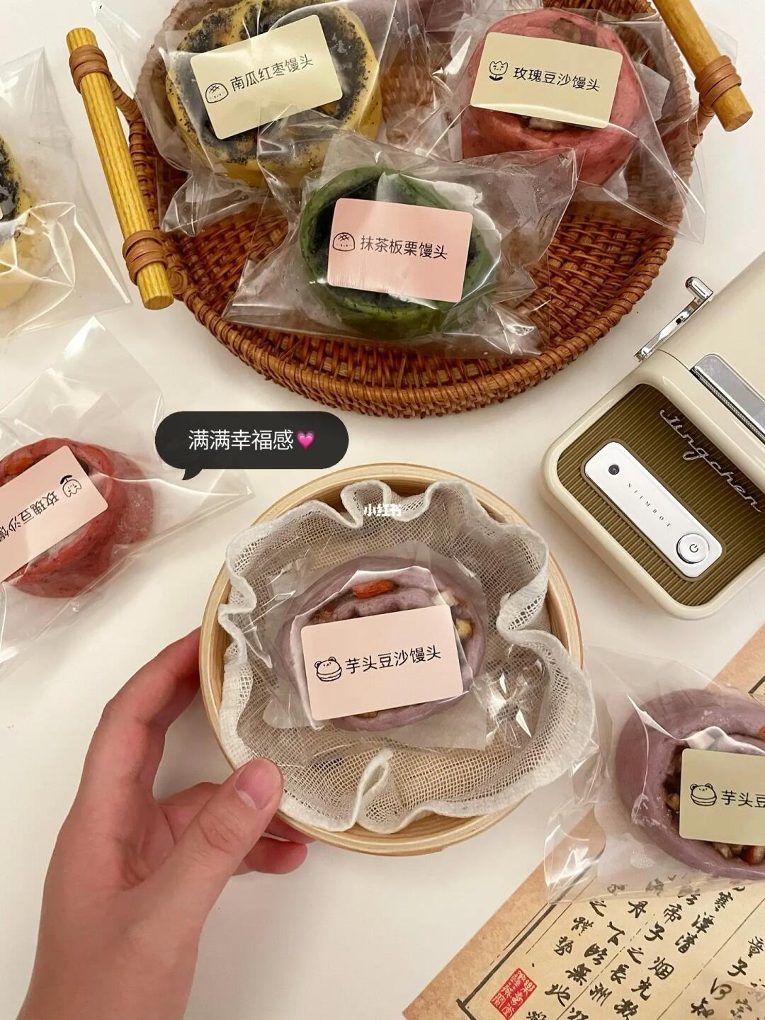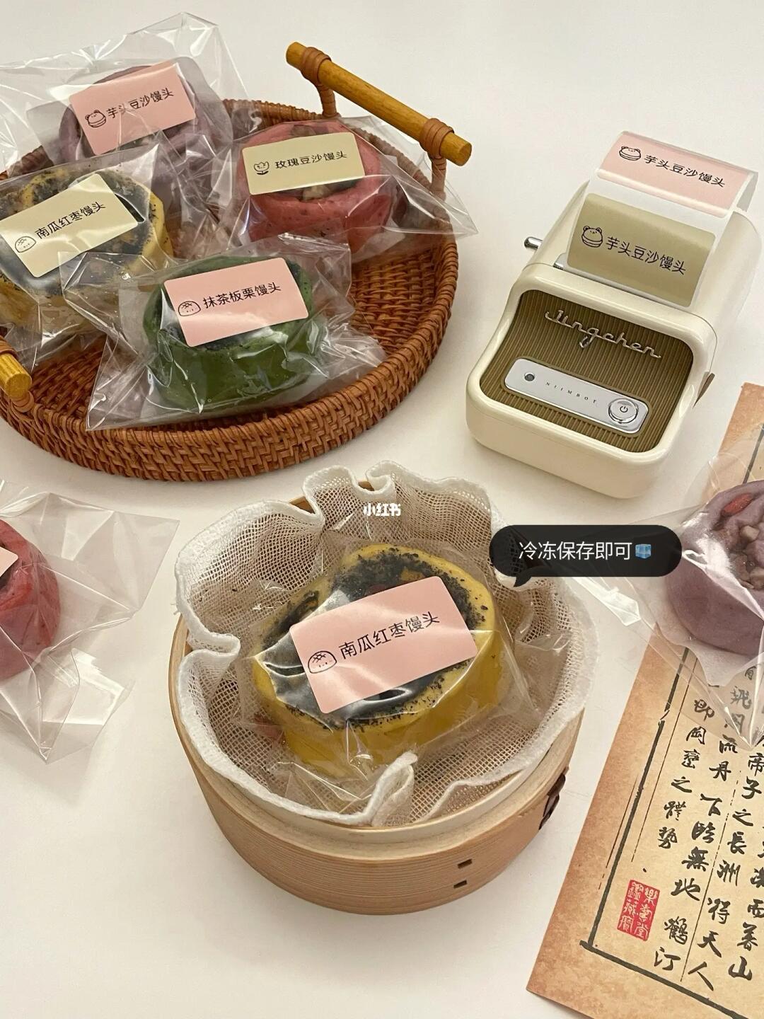 今天宅家又做了许多好吃的馒头们😋这段时间的早餐就备齐啦✌️用标签机打印贴纸做好口味的分类🫘放入冰箱冷冻起来🧊随吃随取蒸10~15分钟就可以吃到自己做的幸福馒头!一起试试吧~