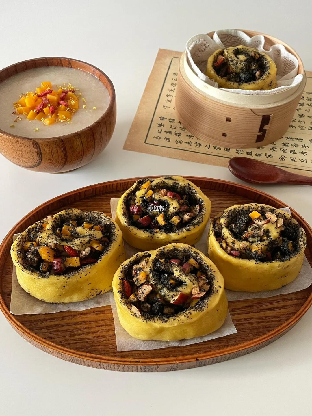 2️⃣南瓜黑芝麻红枣馒头&南瓜米稀🎃