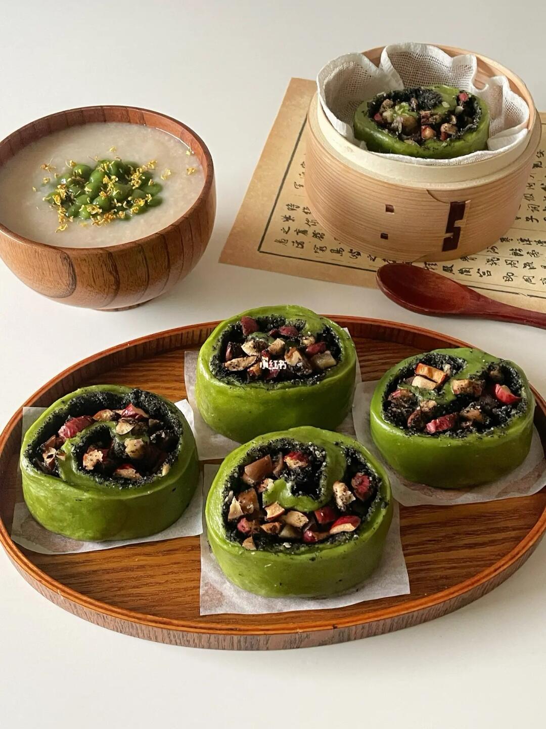4️⃣抹茶黑芝麻红枣板栗馒头&青团米糊🍃