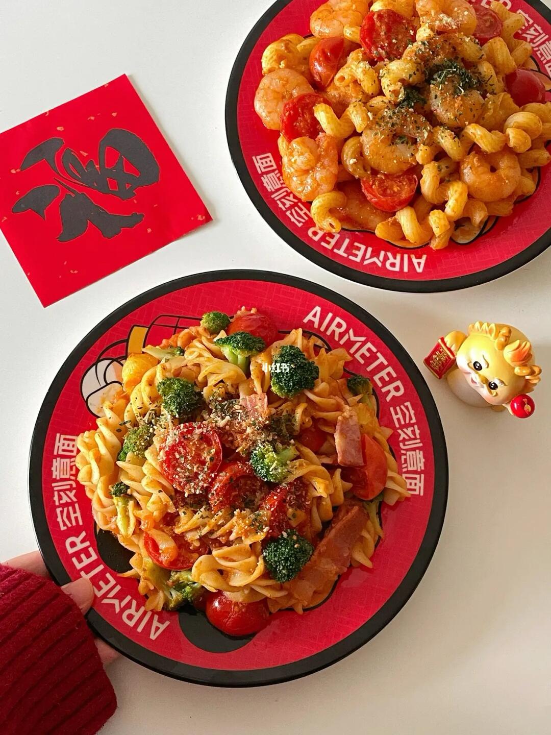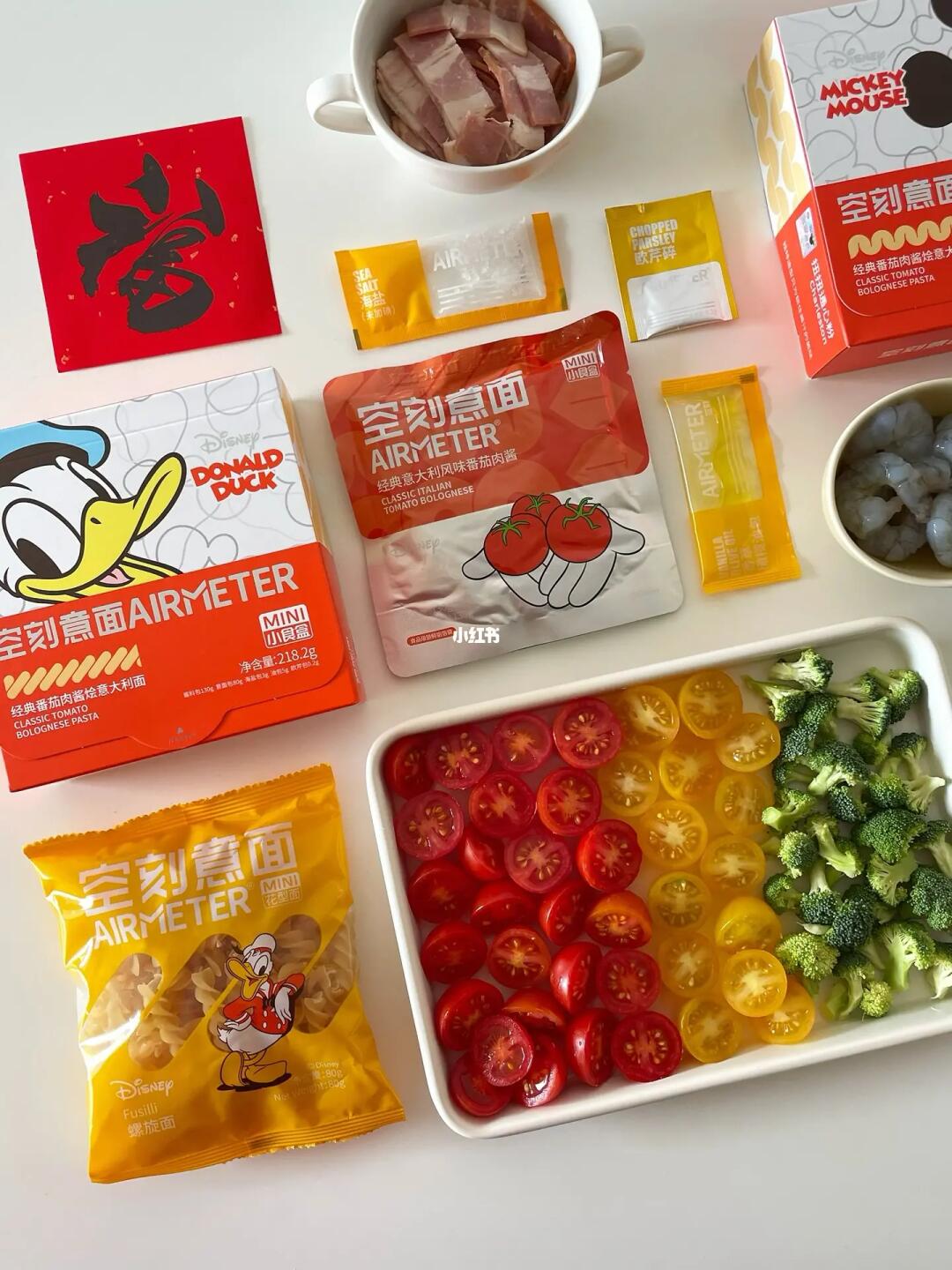 今天用到了空刻的儿童意面🍝番茄味浓郁🍅每一口都裹满了酱汁🍯而且有多种形状的意面:扭扭通心粉、螺旋面、贝壳面等等🍘家里的大朋友小朋友都很喜欢💕是在家也可以轻松做的美味意面~决定过年再囤上一些当年货啦🧧