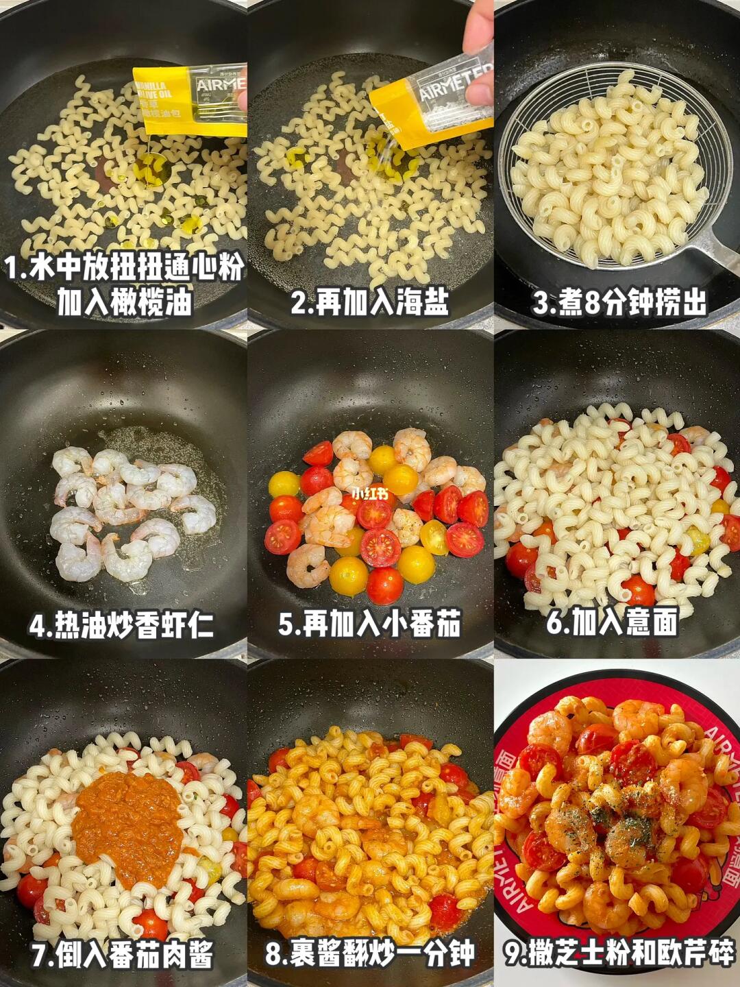 1️⃣番茄肉酱虾仁扭扭通心粉🍅