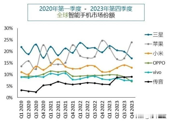日前,有市场调研机构发布的数据显示,在2023年第四季度,全球智能手机市场增长8%,达到3.2亿部,结束了连续七个季度的下滑。有意思的是,在2023年全年,全球智能手机总出货量方面,苹果首次略超三星,成为2023年度出货量最高的厂商。而其后小米、OPPO和传音分别占据13%、9%和8%的市场份额,分别排在了年度出货量第三、四、五的位置。这么看来,苹果还是有点香的。