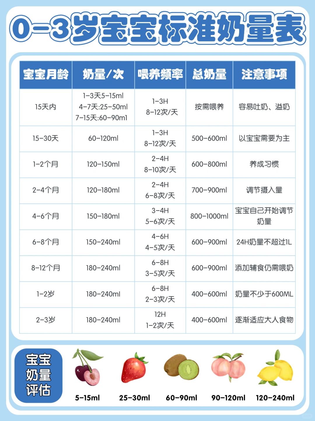 ❓吃多少👉直接看图2的0到3岁宝宝科学喂养表