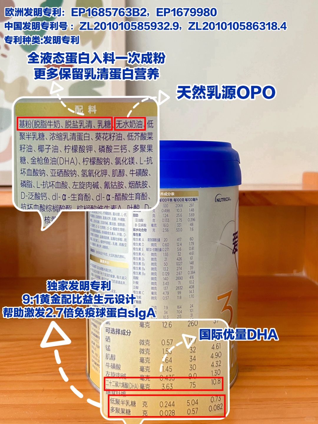 协同上里面天然乳源OPO,比化学合成的更亲和小肚肚。加强宝宝对👍钙和脂肪的吸收,还能减少钙皂的形成‼️我们宝贝喝下来,现在肉肉长了,都没怎么出现过硬便便问题哦,肚肚状态挺好的!不愧是我无限回购的宝藏奶粉!