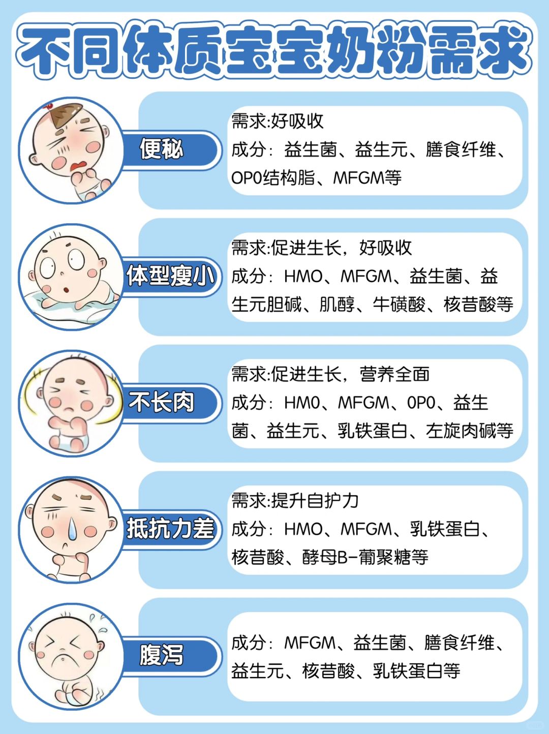 ❓怎么吃👉根据图3孩子的体质找大致符合的奶粉