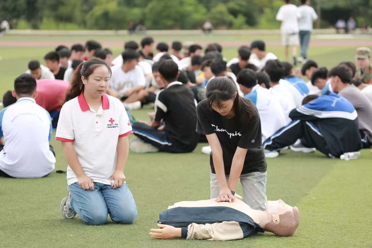本次培训由学校领导主持,特邀金沙县人民医院医生、贵州省红十字会应急救护中心金沙职校站点教师及金沙县人民武装部教官联合授课,通过理论讲解与实操演练相结合的方式,为新生上了一堂生动的“生命必修课”。应急救护技能是每位学生应该掌握的基本生存能力,更是校园安全体系的重要环节。希望通过这次培训,同学们能树牢安全意识,在关键时刻守护自己和他人的生命安全。