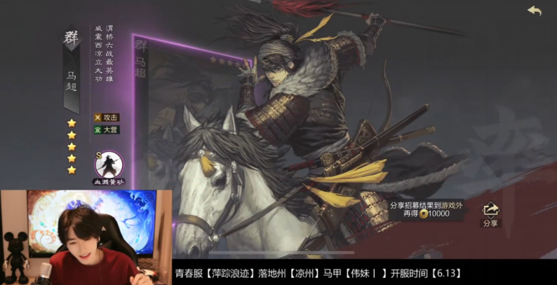 这可不是虚假的宣传,而是真实存在的实例。如果你有关注前面提到的主播,就会发现他们是真的在青春服零氪爽玩:像伟妹就在下铜币卡池前立下flag:“愿意十年单身换一张马超”,结果第一抽就如愿以偿,直接让那些花了几千的氪佬气的捶胸顿足。