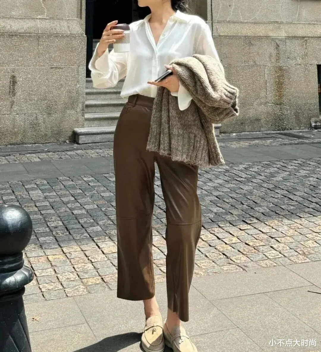 棕色调的九分直筒裤很贴合初秋的氛围感,穿上就是复古质感,初秋的暖意和气质迎面拂来。▼