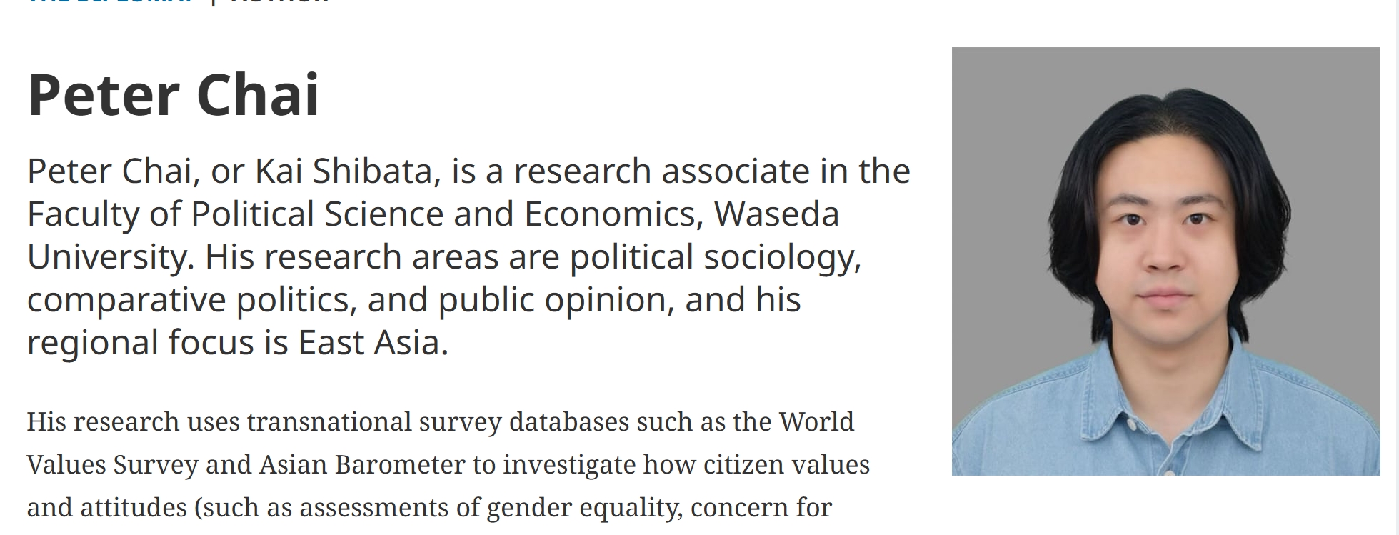 在向各位读者介绍这篇文章是如何善用“春秋笔法”之前,笔者先说一下本文的作者:皮特·柴(Peter Chai),日文名字柴田凯(Kai Shibata,注意这个看似中文名的名字实际上是日文名)。想必大家看名字就知道他是华人。