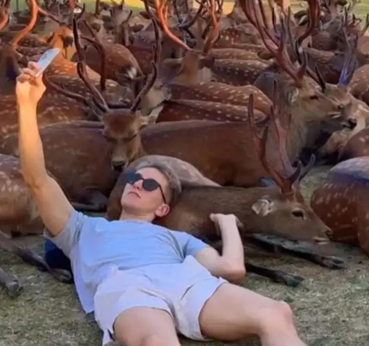 导致日本网民“应激”的原因仅仅是他们以为这位小姑娘是在日本和鹿互动,认为这是“不礼貌”的行为。但对于真的在日本奈良躺在鹿身上自拍的白人,日本网民噤声了。