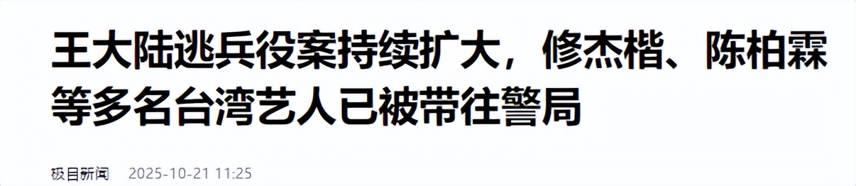 从最开始的王大陆,到后来5月份那批人,再到现在的修杰楷、陈柏霖这些知名度更高的艺人,每一波都有新的名字出现,每一波都让外界更加震惊。