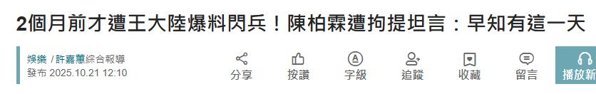 陈柏霖刚被带走的时候显得有些意外,但很快就调整了状态,对警方表示自己“早就知道会有这一天”,他从王大陆的事情曝光后就一直在等着这个结果。